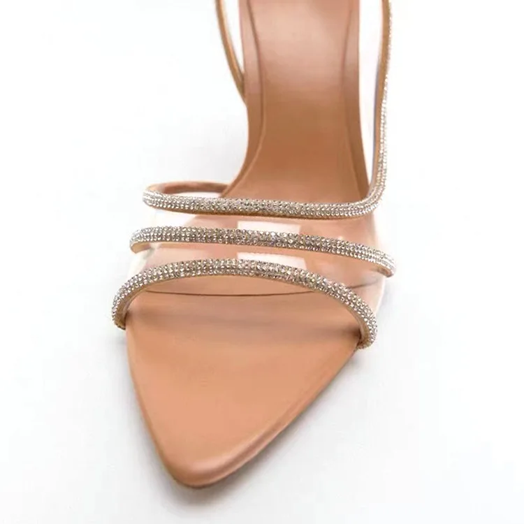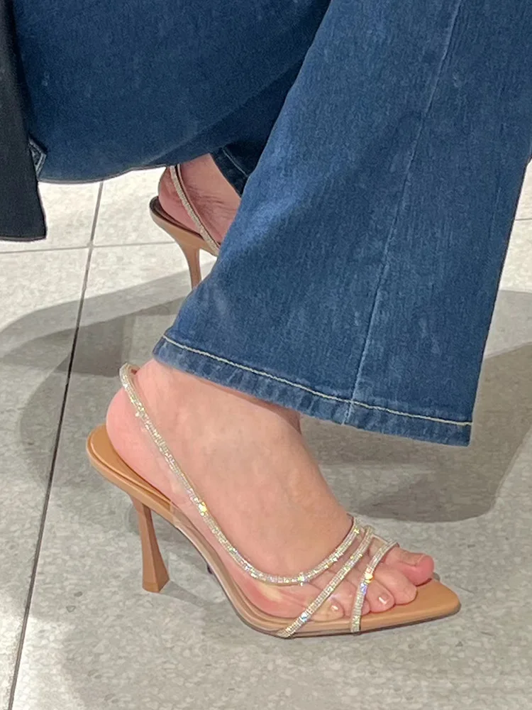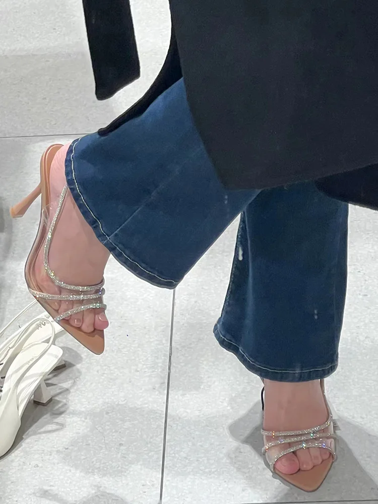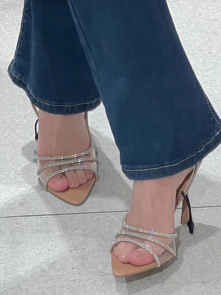 - > Salto fino salto alto feminino 2024 verão novo estilo de fadas sexy boca rasa volta oco apontou água diamante sandálias dedo do pé aberto
