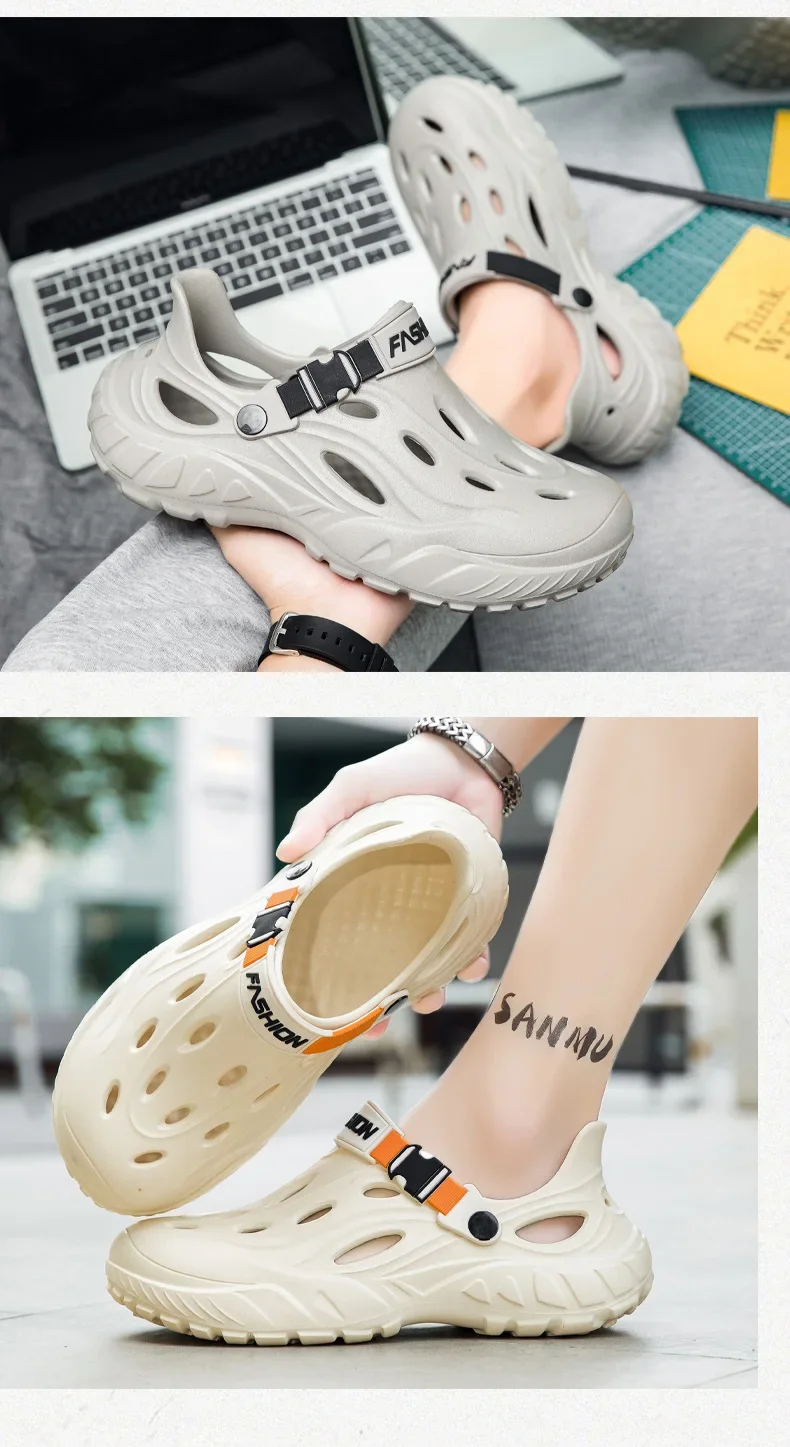 - > Sandálias masculinas ao ar livre chinelos esportivos praia slides tamancos respiráveis sapatos casuais de jardim antiderrapante caminhadas sandálias ao ar livre