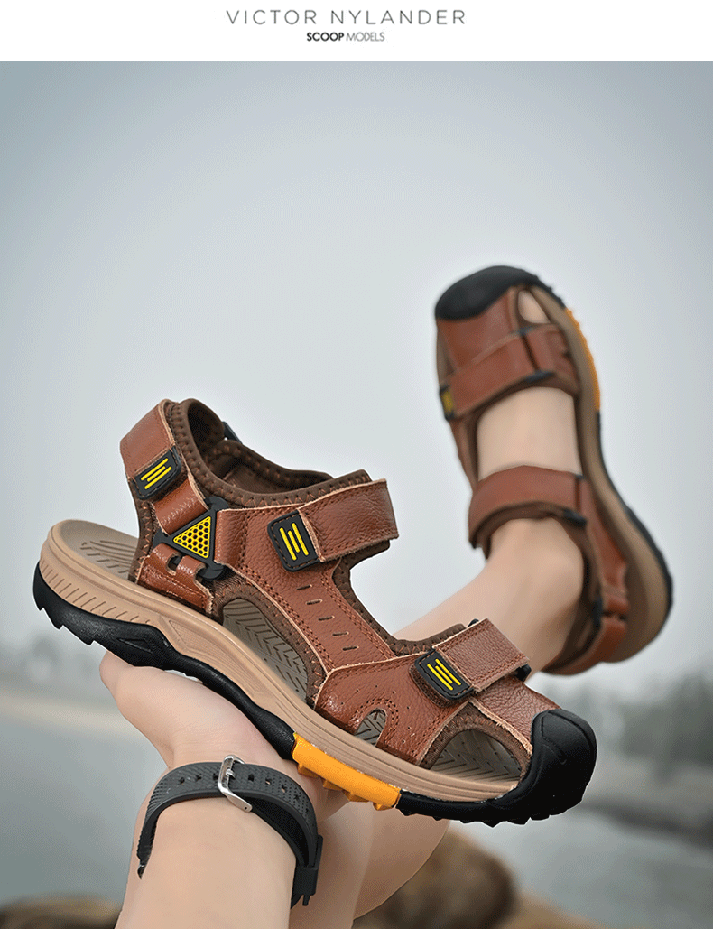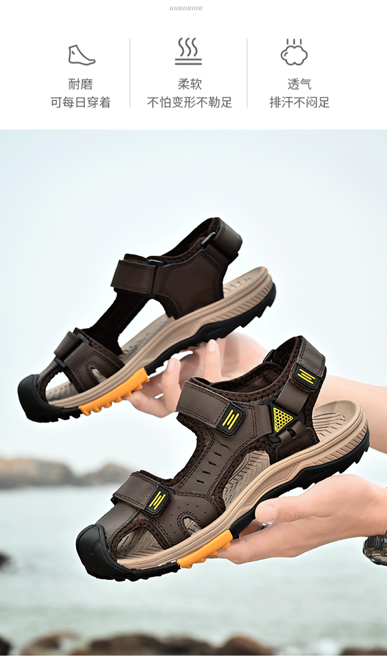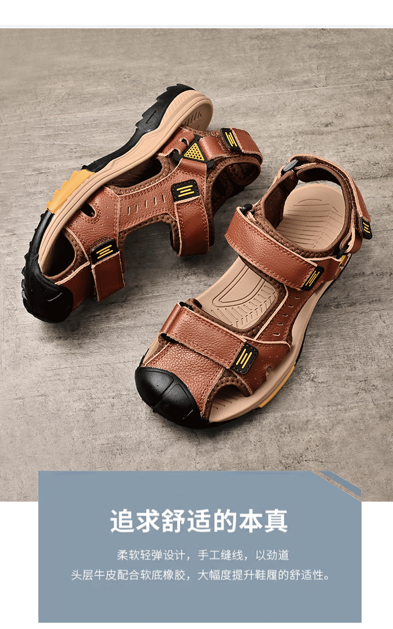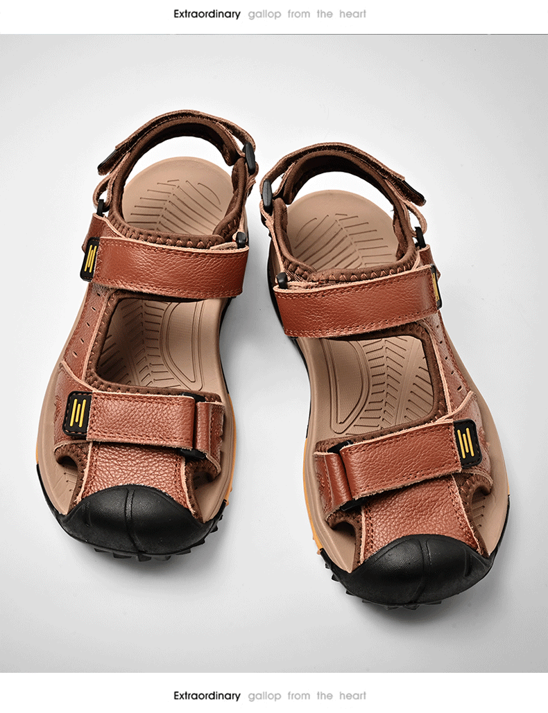 - > Sandálias masculinas de verão de couro genuíno sapatos casuais ao ar livre sandálias de couro para homens sapatos de praia sapatos masculinos romanos