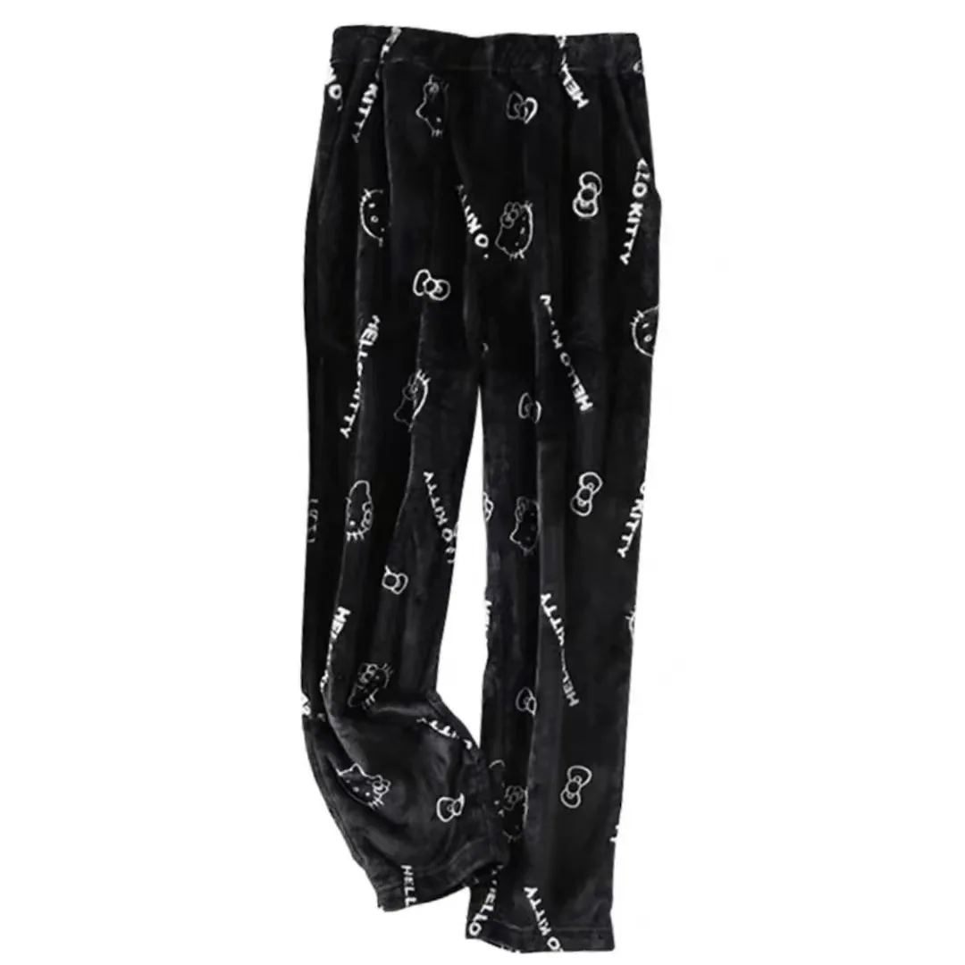 Sanrio hello kitty pijamas de flanela feminino kawaii anime dos desenhos animados calças casuais para casa halloween moda lã outono wear