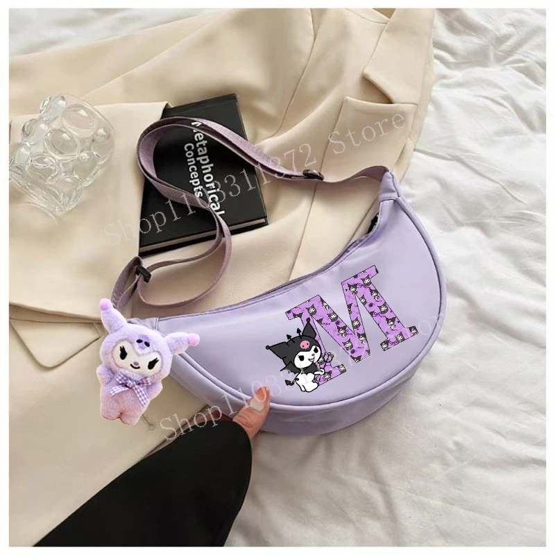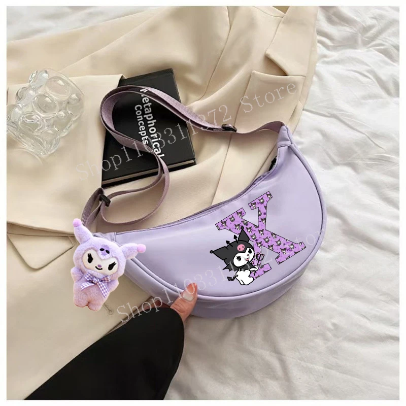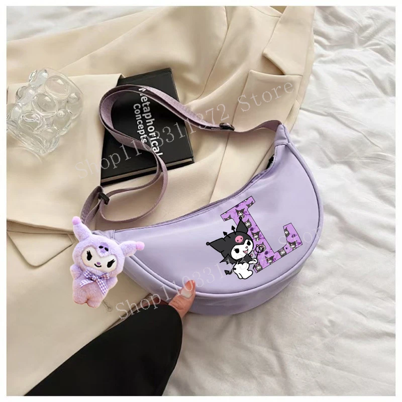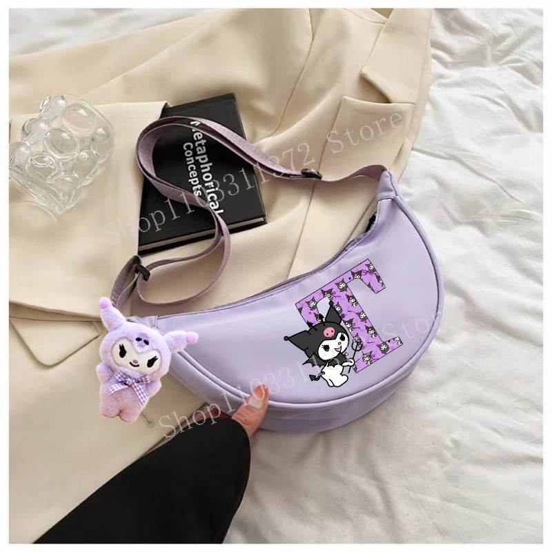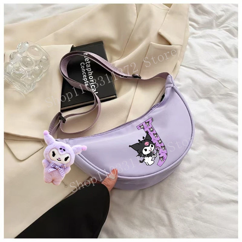 - > Sanrio kuromi bolsa de ombro moda carta A-Z impressa y2k moda feminina boneca bolsas axilas sacos kawaii festa aniversário presente