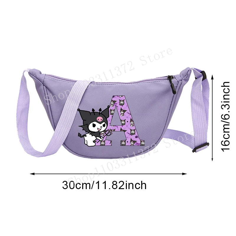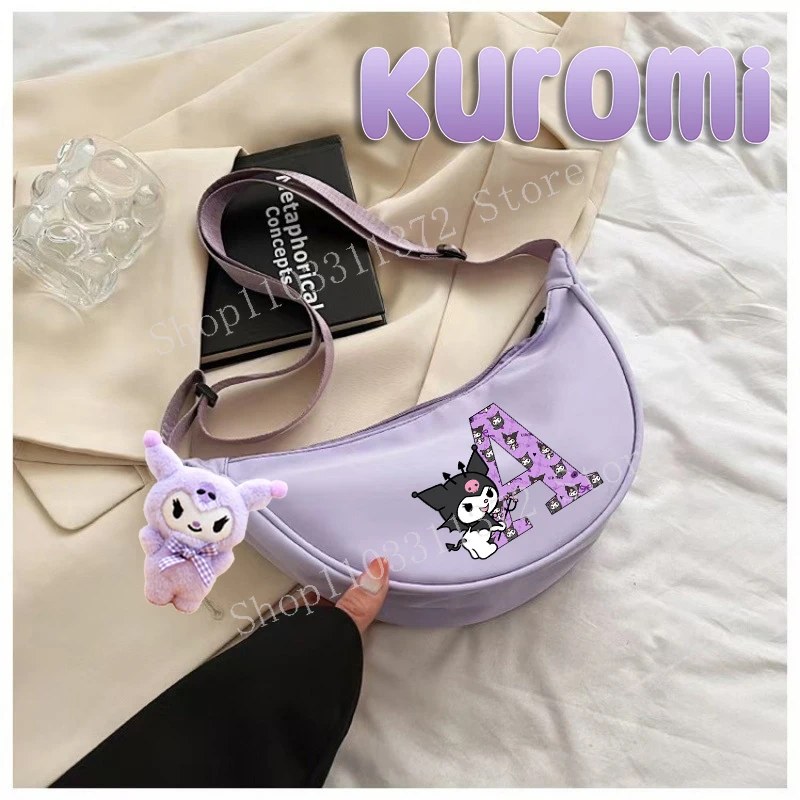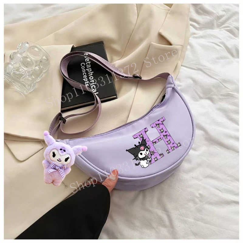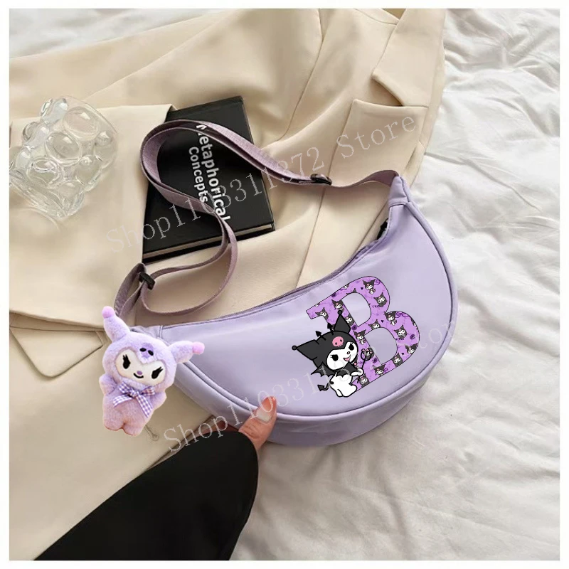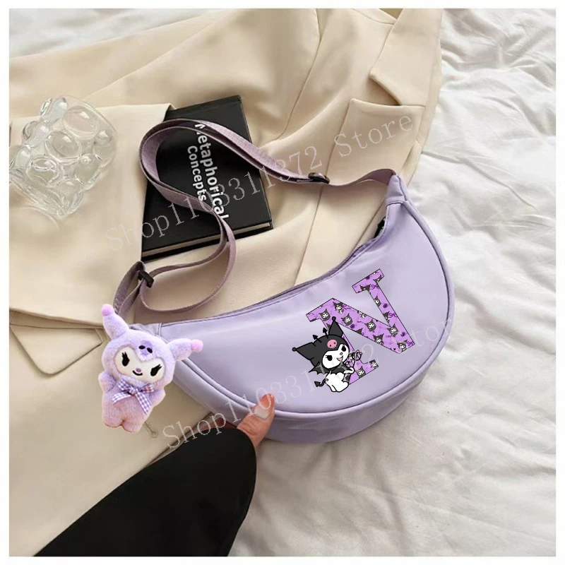 - > Sanrio kuromi bolsa de ombro moda carta A-Z impressa y2k moda feminina boneca bolsas axilas sacos kawaii festa aniversário presente