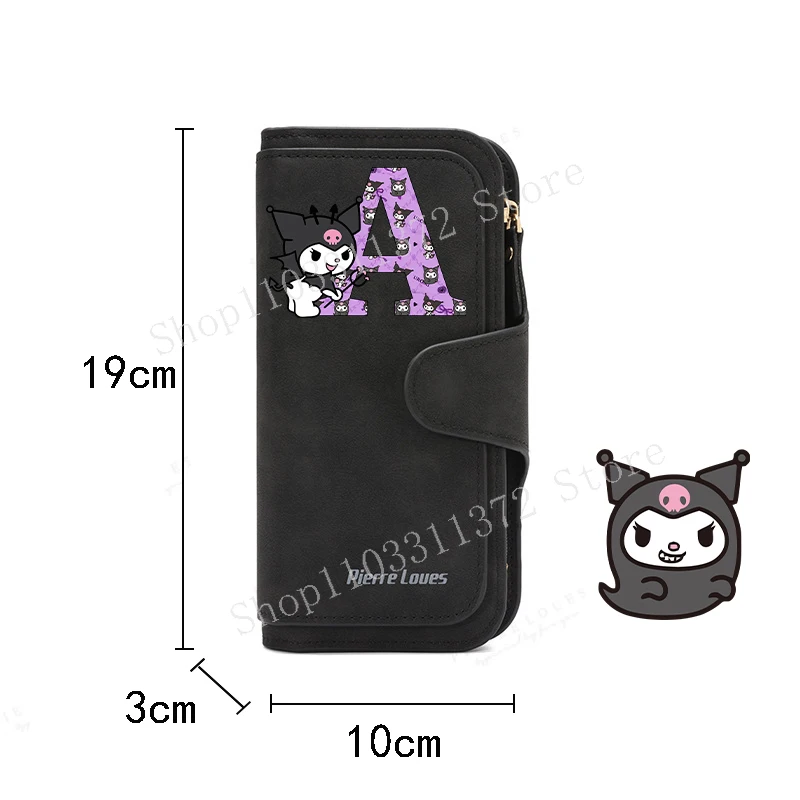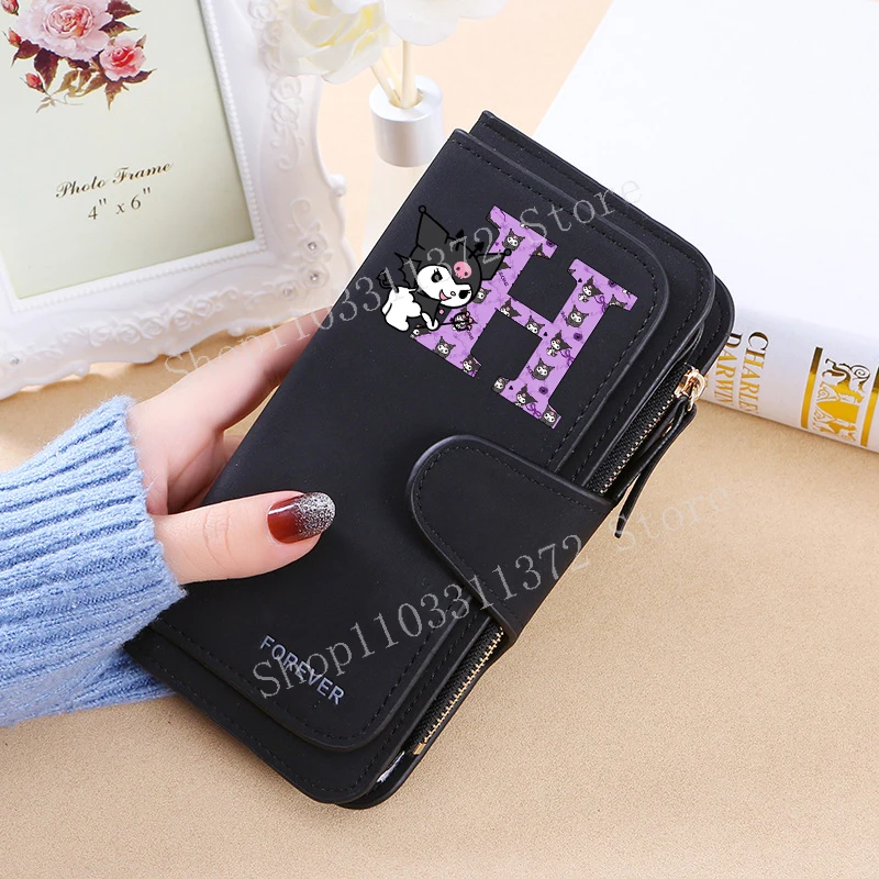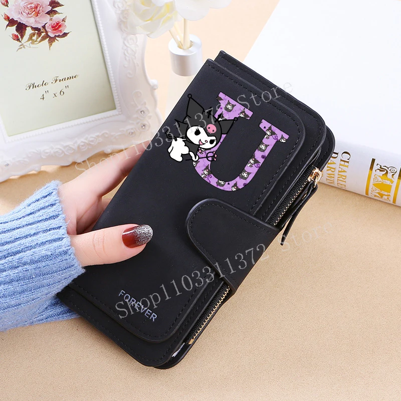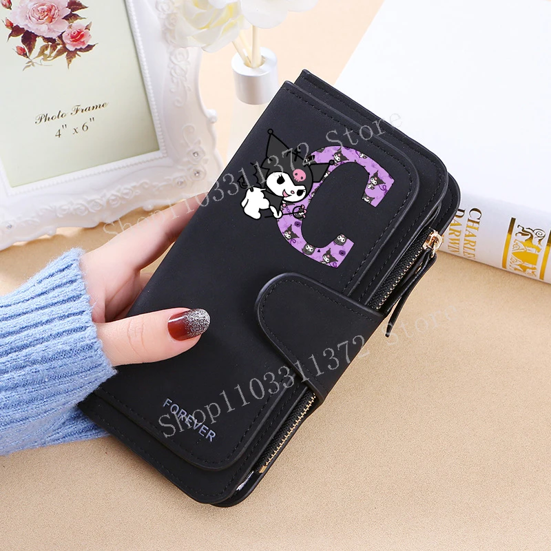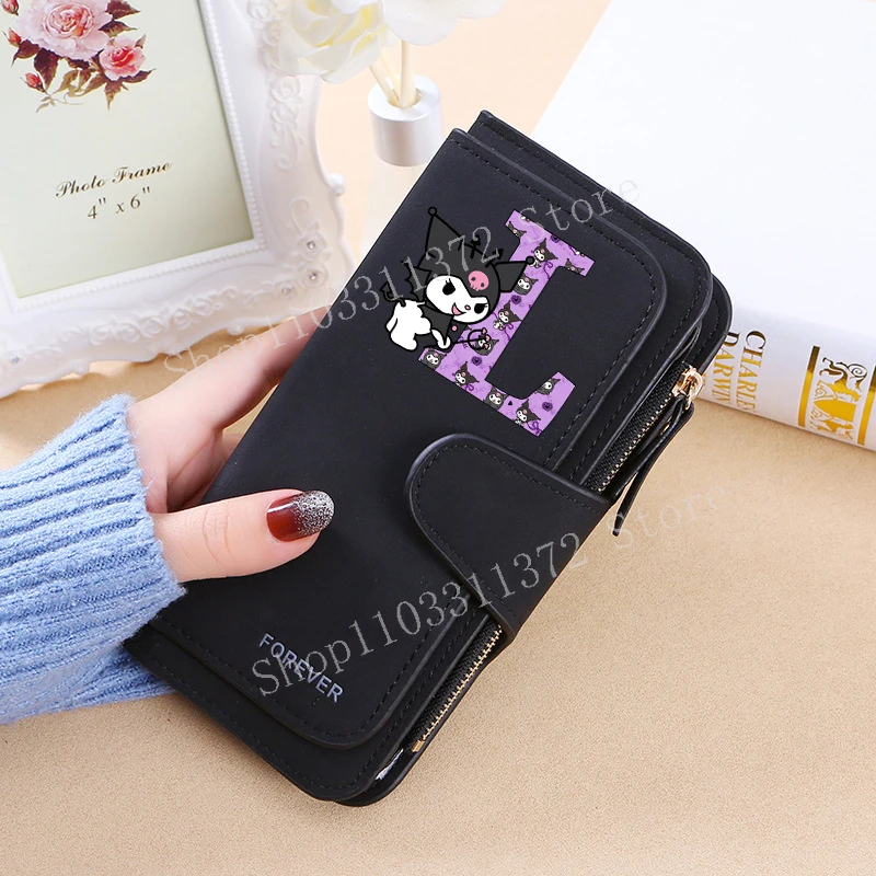 - > Sanrio kuromi carteira feminina carta A-Z impresso longo bolsas femininas moeda bolsa titular do cartão moda y2k fivela carteiras minimalistas
