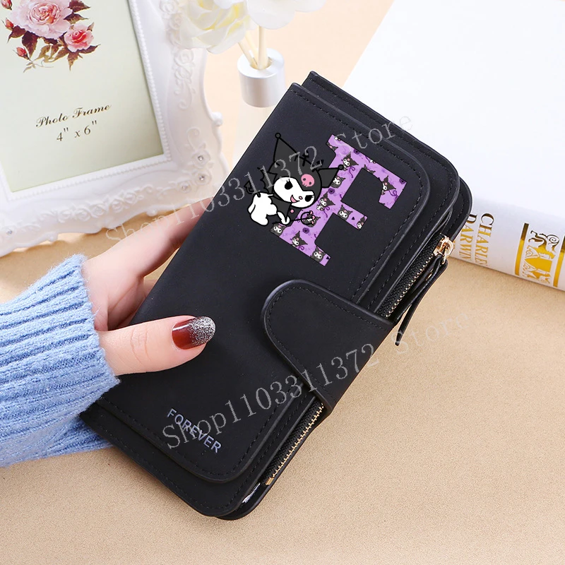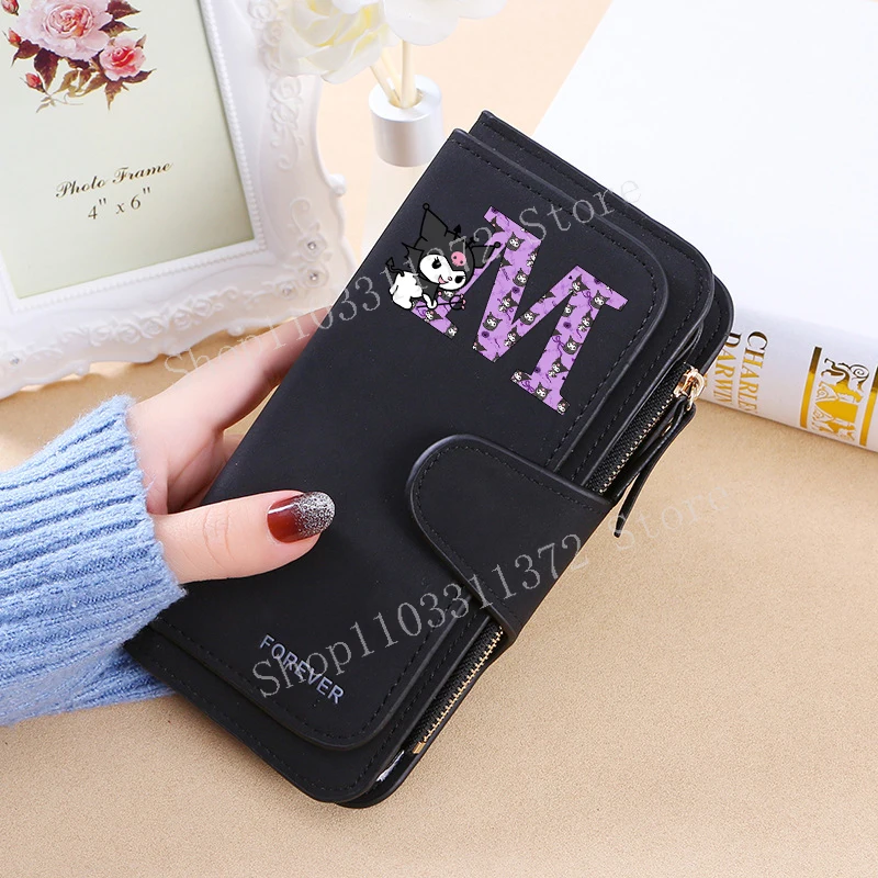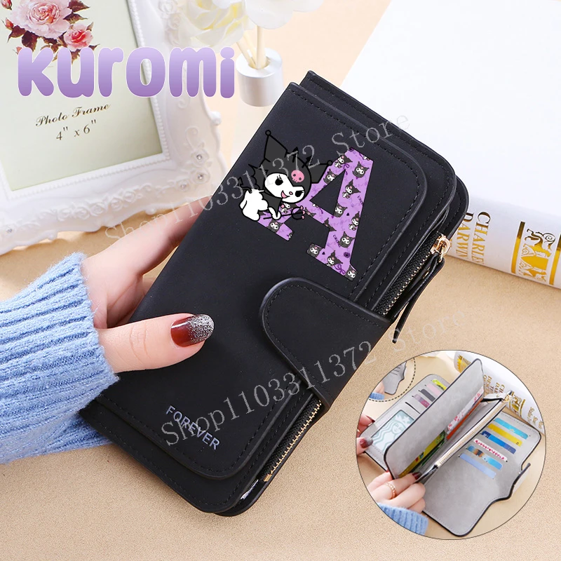 Sanrio kuromi carteira feminina carta A-Z impresso longo bolsas femininas moeda bolsa titular do cartão moda y2k fivela carteiras minimalistas