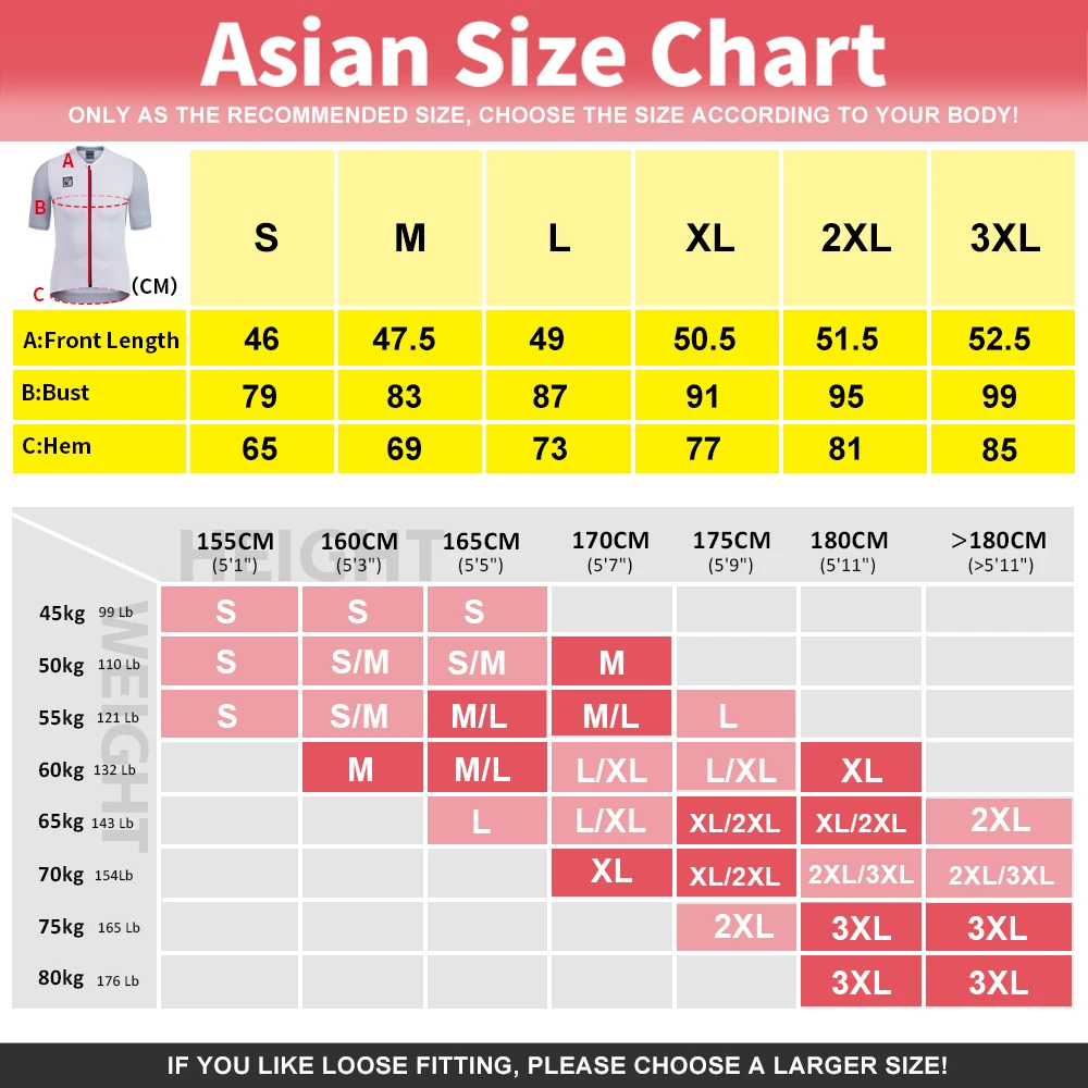 Tamanho AsiáticoS-3XL