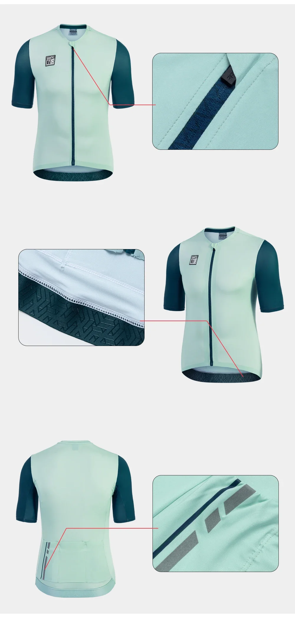 Santic camisa de ciclismo masculina verão respirável de secagem rápida proteção uv camisa de bicicleta com zíper completo umidade-wicking & reflexivo mtb topos