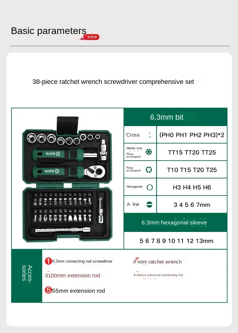 - > SATA-Chave De Catraca E Chave De Fenda Kit Multi, 6,3mm, Ferramentas De Reparo Doméstico DIY, Bits De Chave De Parafuso Magnética, Ferramentas De Mão