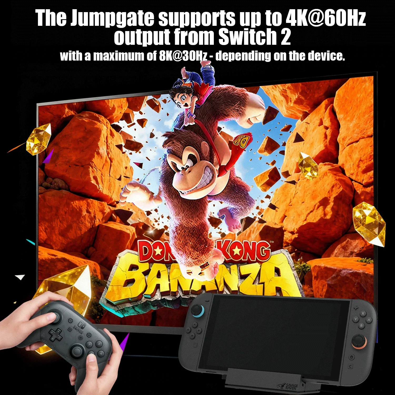 - > Savage Raven by Skull & Co. Jumpgate Dock USB C Hub Estação de acoplamento portátil para switch 2 e acessórios de jogo OLED