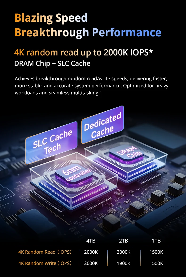 - > SEIX 4 TB 14356 MB/s SSD, PCIe Gen5x4 NVMe, 2400 TBW, LPDDR4 4 GB de cache DRAM