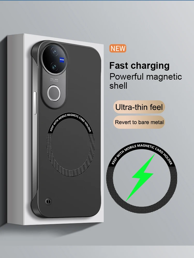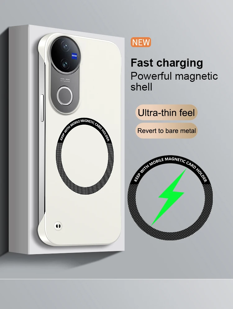 - > Sem borda caso de telefone para vivo v50 lite v50e t4r v50lite 5g fundas fino magnético carregamento sem fio duro original capa traseira escudo