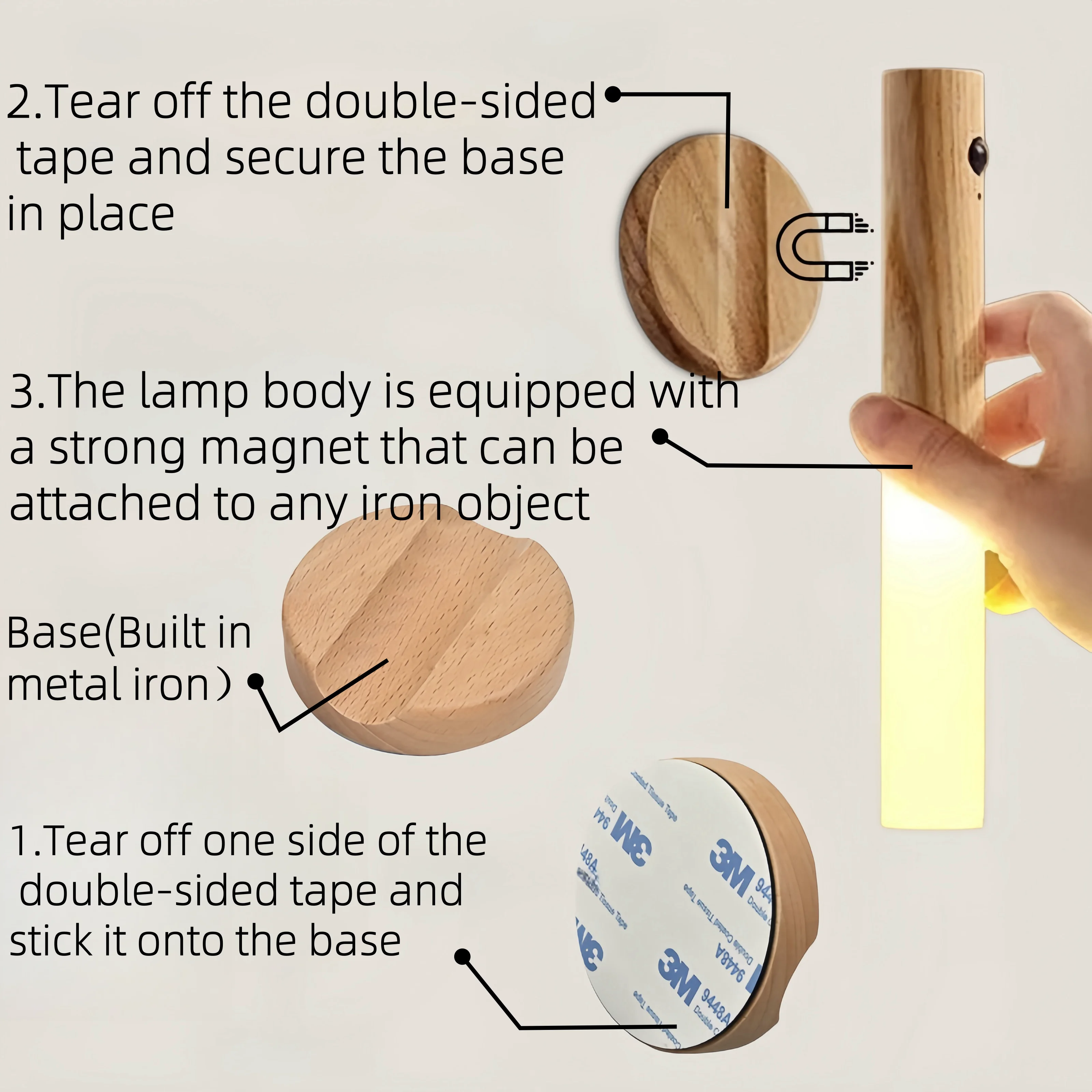 Rasgue o adesivo dupla face na parte de trás da base magnética, cole-o no local desejado e, em seguida, fixe a luz noturna na base.