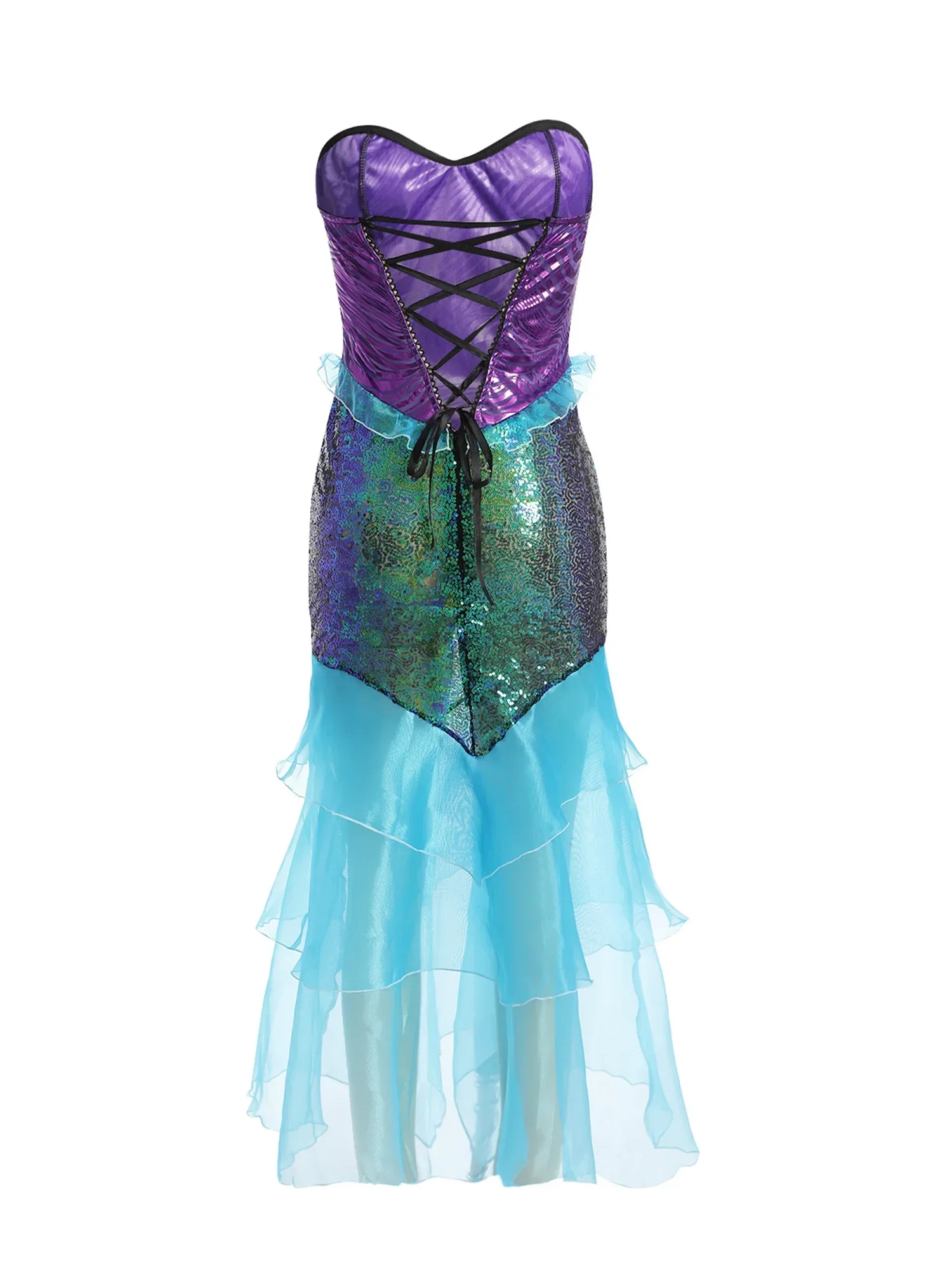 Sereia ariel princesa trajes adultos mulheres halloween sereia masquerade uniformes vestir-se fantasia lantejoulas plissado vestido