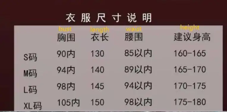 Inclui: forro + casaco externo + cinto + calça + protetor de pulso + protetor de pulso de metal + gola de pele