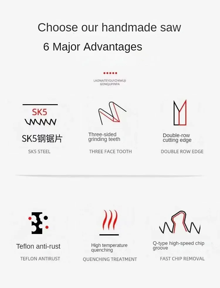 4.Dobrável:Esta serra pode ser dobrada rapidamente, fácil de usar e compacta e portátil quando dobrada.