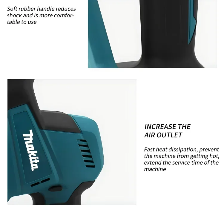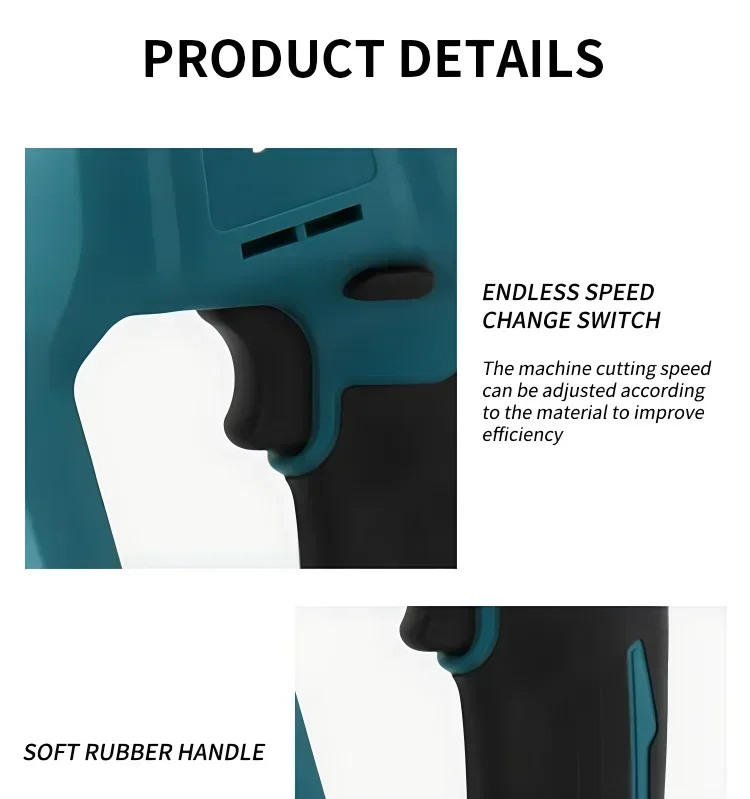 › Cabo emborrachado com pegada macia proporciona maior conforto no trabalho. › Base fixa reforçada para maior durabilidade. › Gatilho grande de velocidade variável para dois dedos, para maior conveniência do operador. › Freio elétrico para máxima produtividade. › Sistema de troca de lâmina que permite instalação e remoção mais rápidas. › Gatilho de velocidade variável para maior conveniência. › Design refinado do mecanismo de manivela minimiza a deflexão da lâmina e reduz a vibração.