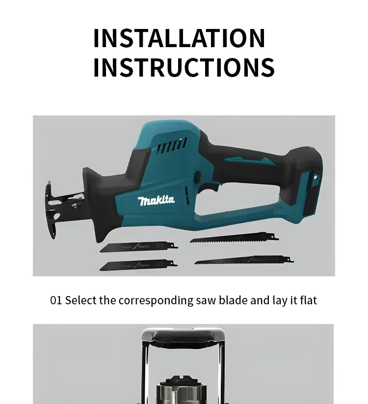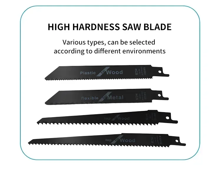1.Esta ferramenta pode ser usada em materiais de madeira, plástico e ferro. 2. Remova todos os detritos e materiais estranhos presos à lâmina de serra e ao clipe da lâmina. Caso contrário, pode levar ao aperto insuficiente da lâmina de serra.