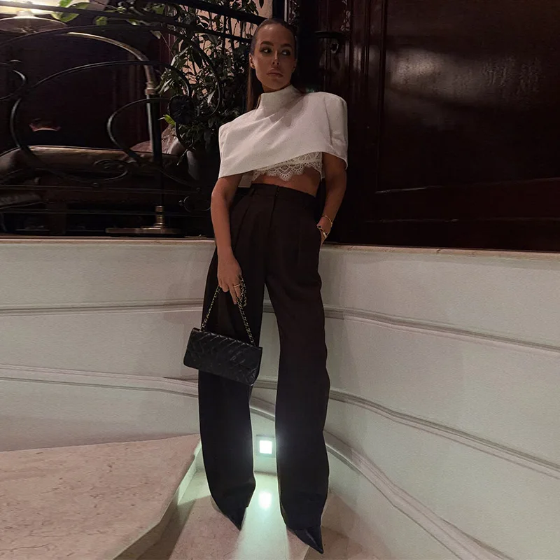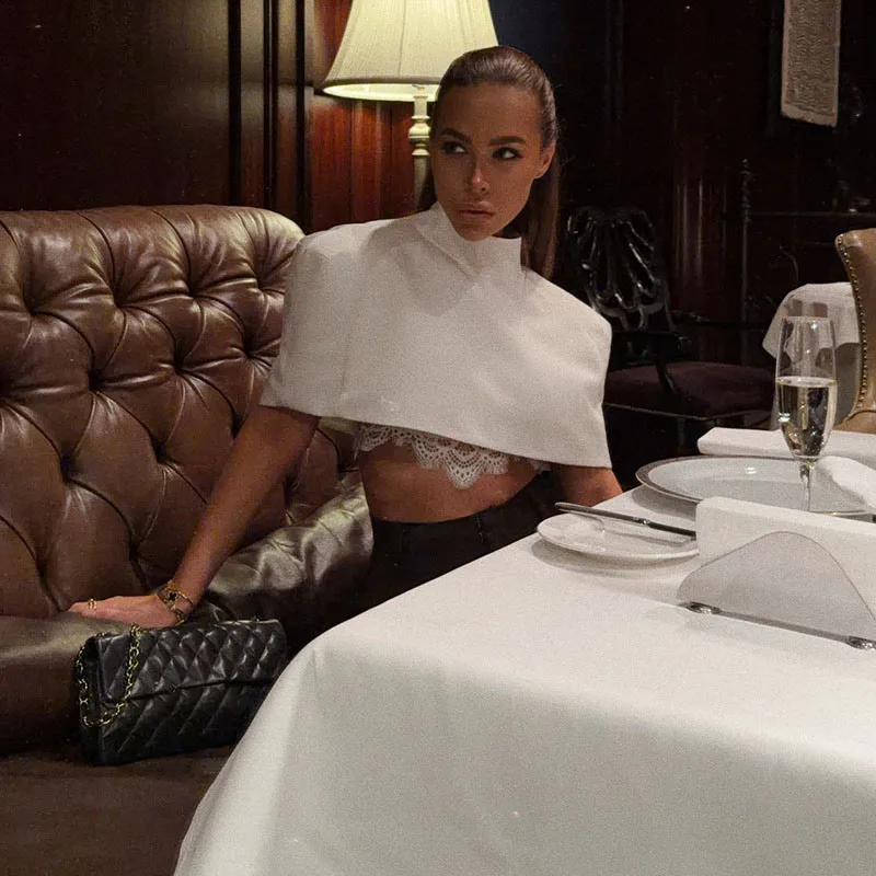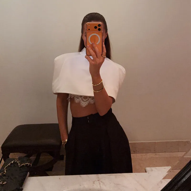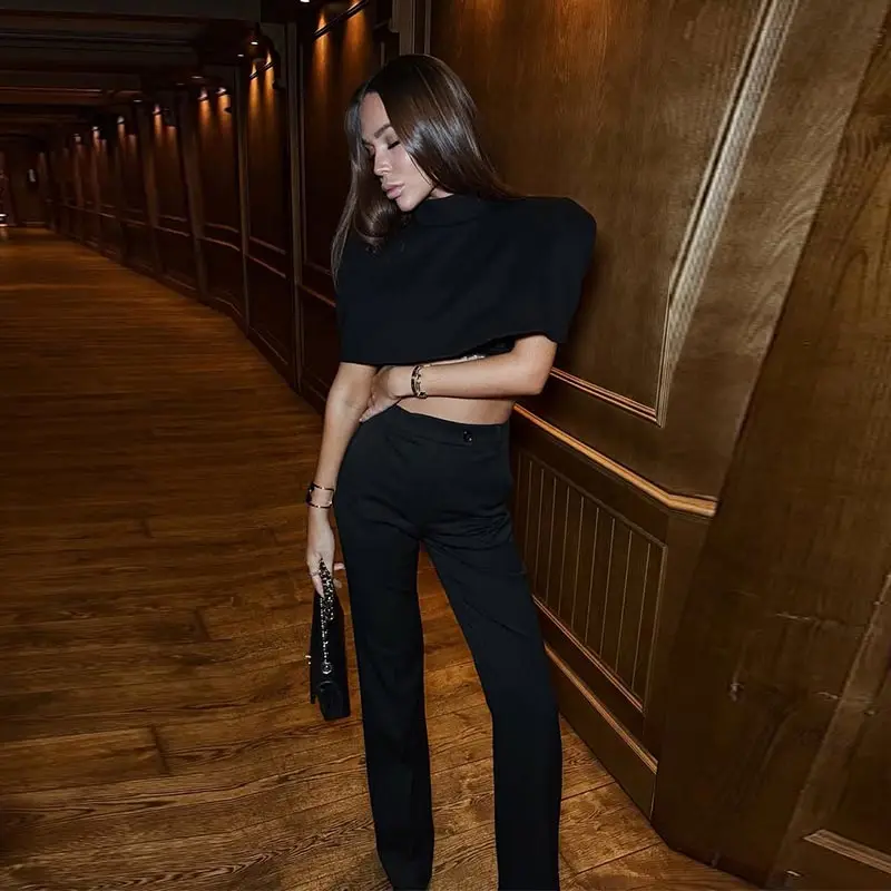 Sexy xale recortado topos 2026 primavera nova feminina sólida ombro almofadas gola manga curta camiseta festa feminina clubwear