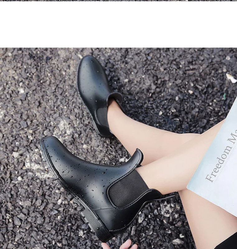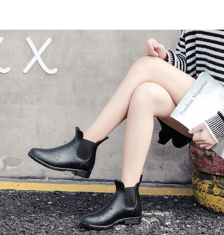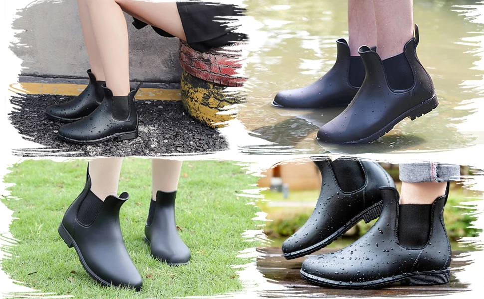 - > Shevalues mulheres chelsea botas de chuva brilhantes botas de tornozelo à prova dwaterproof água superior do dedo do pé elástico sola baixa moda antiderrapante senhoras botas