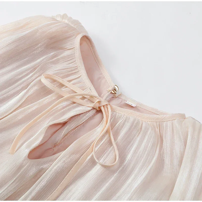 Estilo 2026: Tendências da ModaComo um design contemporâneo das novas coleções de 2026, este vestido se mantém à frente das tendências. Combina com maestria a elegância atemporal (pregas, corte A) com as tendências atuais da moda (mangas bufantes, amarrações frontais), garantindo uma aparência elegante e moderna.