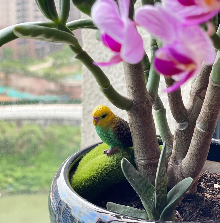 - > Simulação papagaio pássaro modelo animal estatuetas em miniatura ornamento estátua paisagem planta decoração para casa acessórios de jardim de fadas