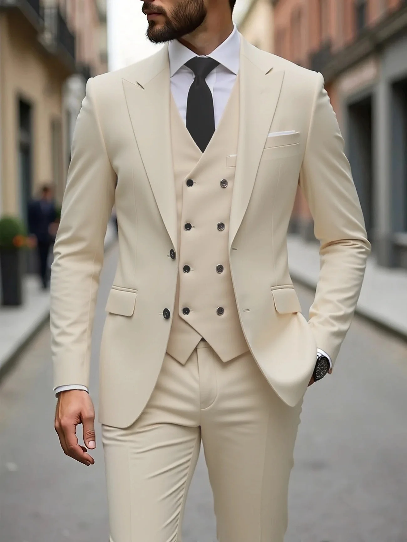 - > Smoking clássico de casamento, slim fit, noivo para homens, 3 peças, padrinhos, terno masculino formal, negócios, ternos (jaqueta + colete + calça)