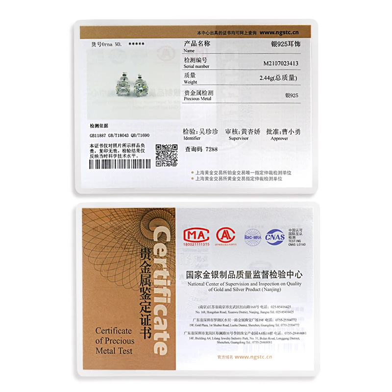 Todos os nossos produtos são feitos de prata pura S925 + banhado a ouro branco 18k + película protetora com tecnologia AF, que pode maximizar a retenção da cor da prata enquanto mantém a estética do produto.
