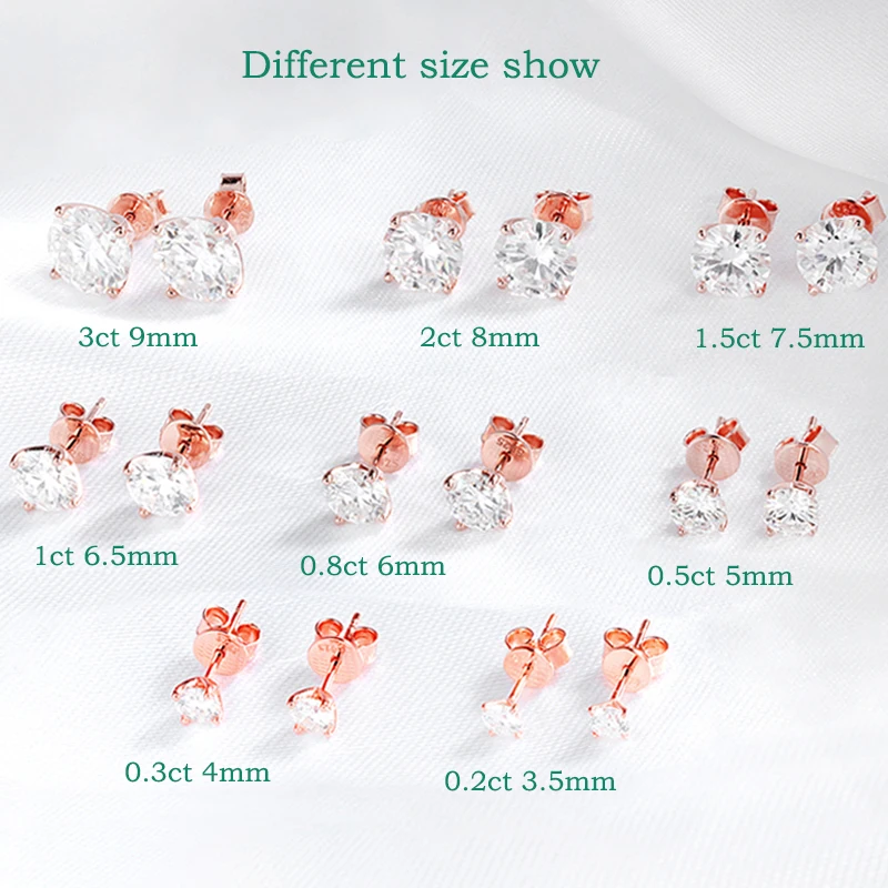 - > Smyoue 0.2-3ct rosa ouro cor moissanite brincos para mulheres espumante clássico casamento laboratório diamante brinco puro 925 prata