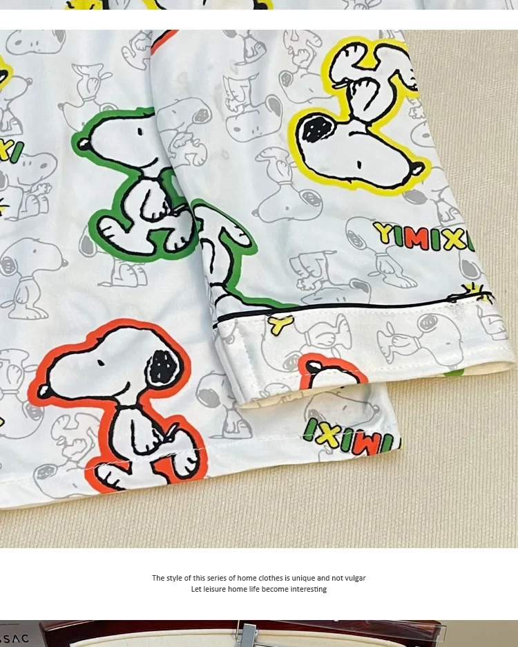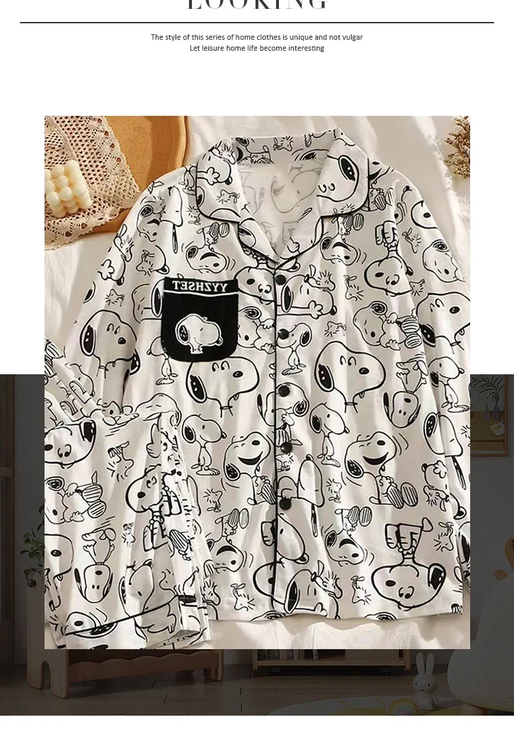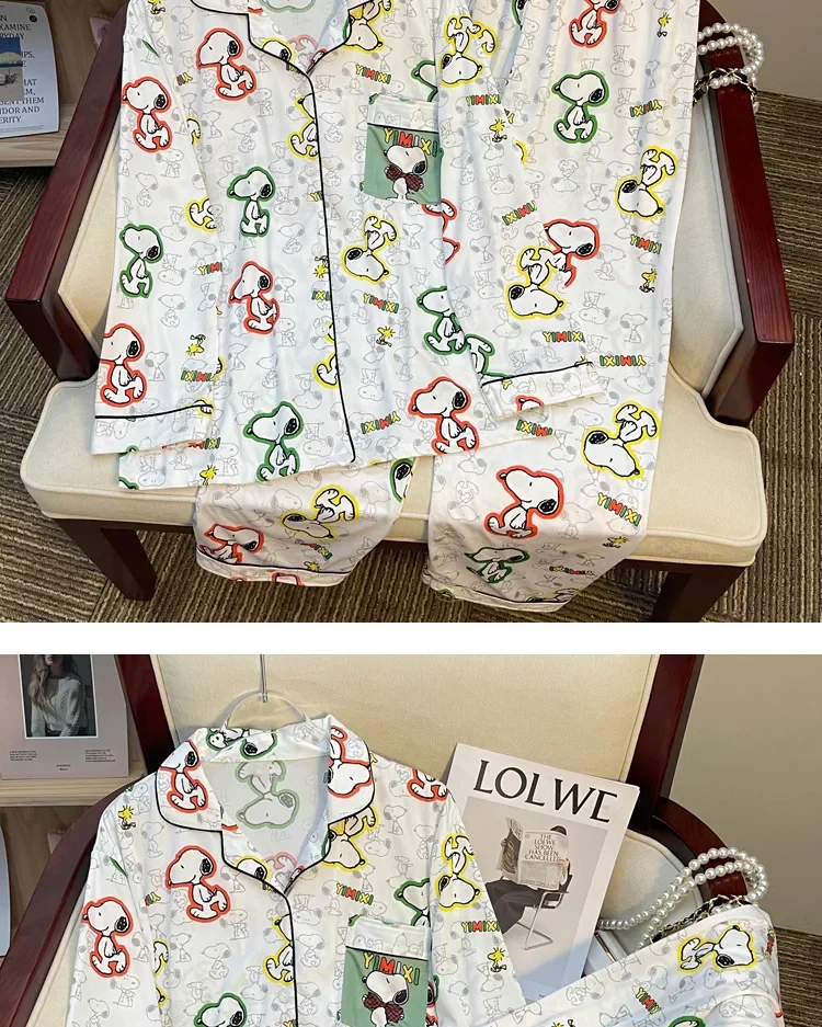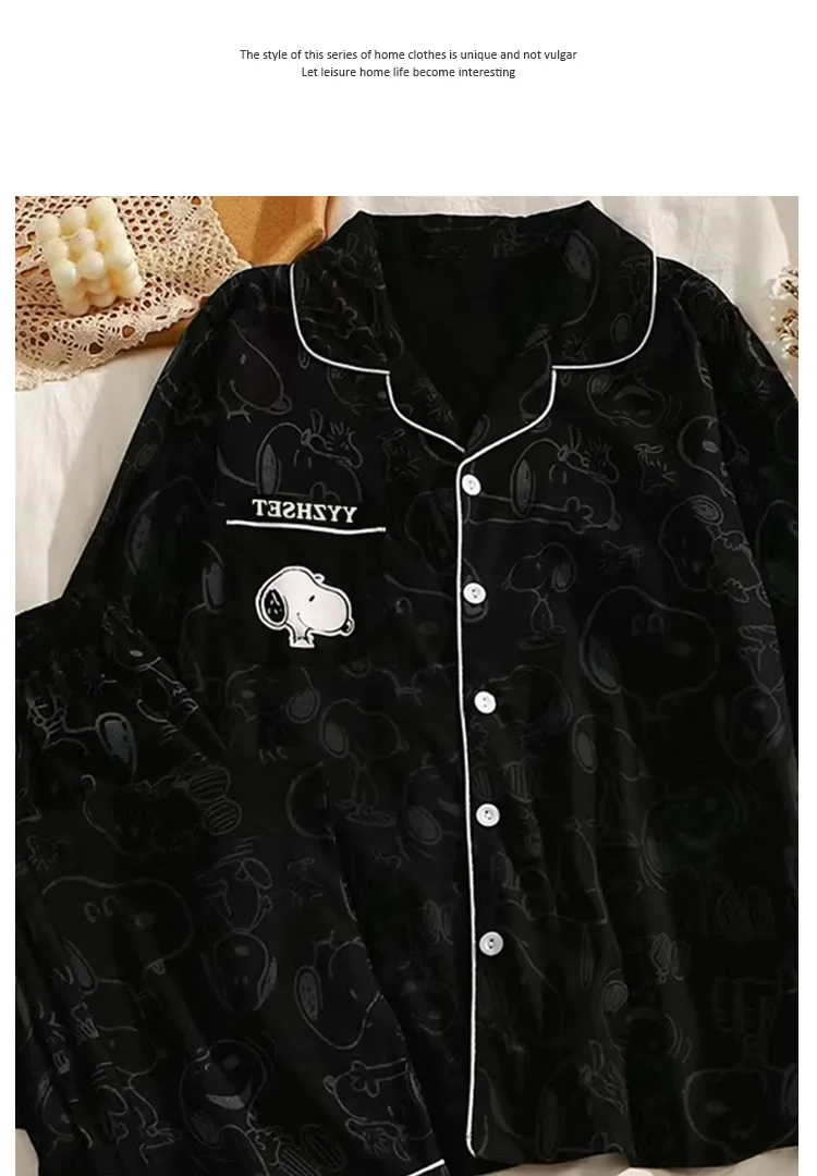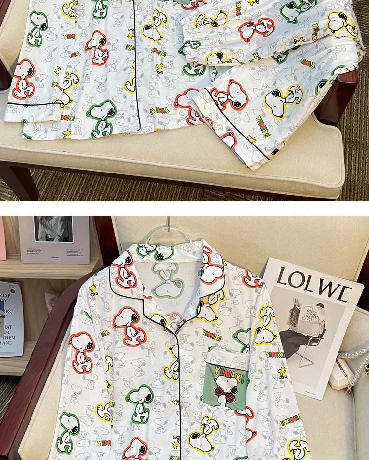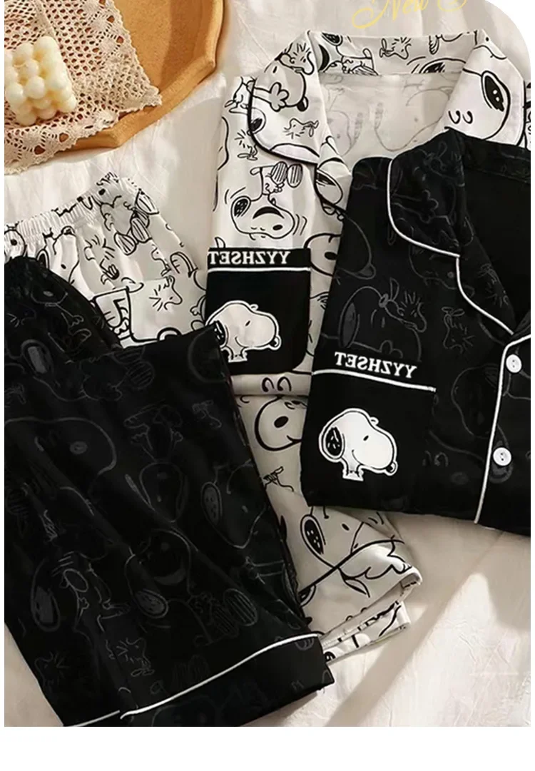 - > Snoopy dos desenhos animados primavera outono pijamas calças de manga longa verão leite seda quente casa roupas pijamas das mulheres dos homens camisola