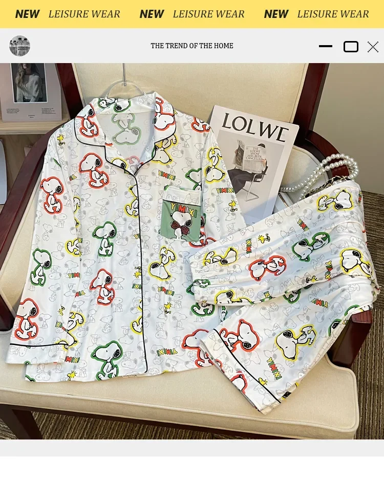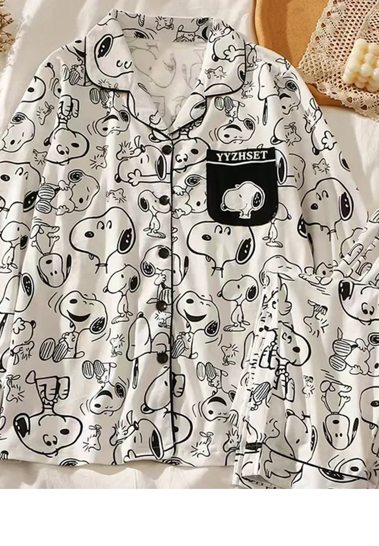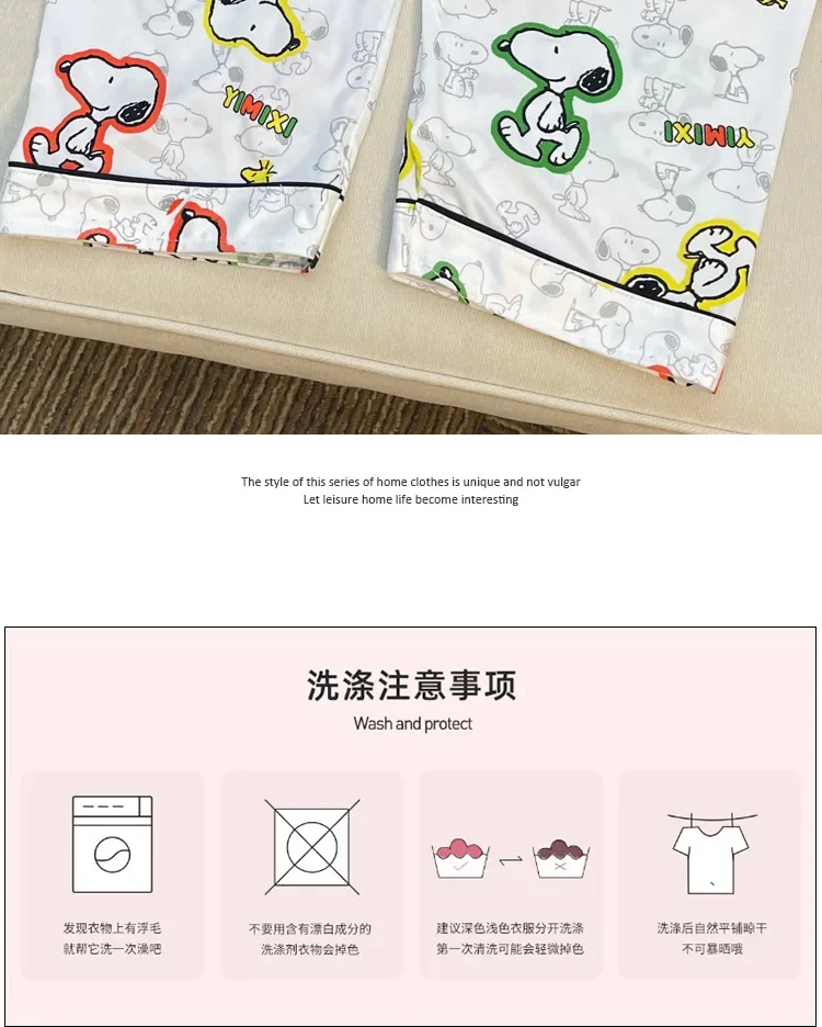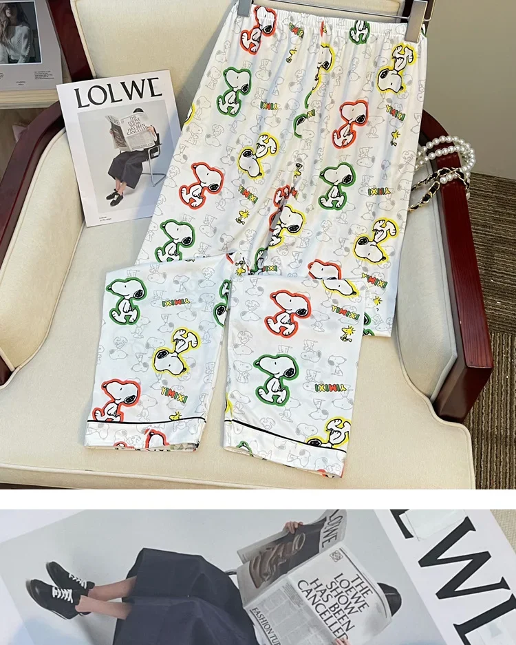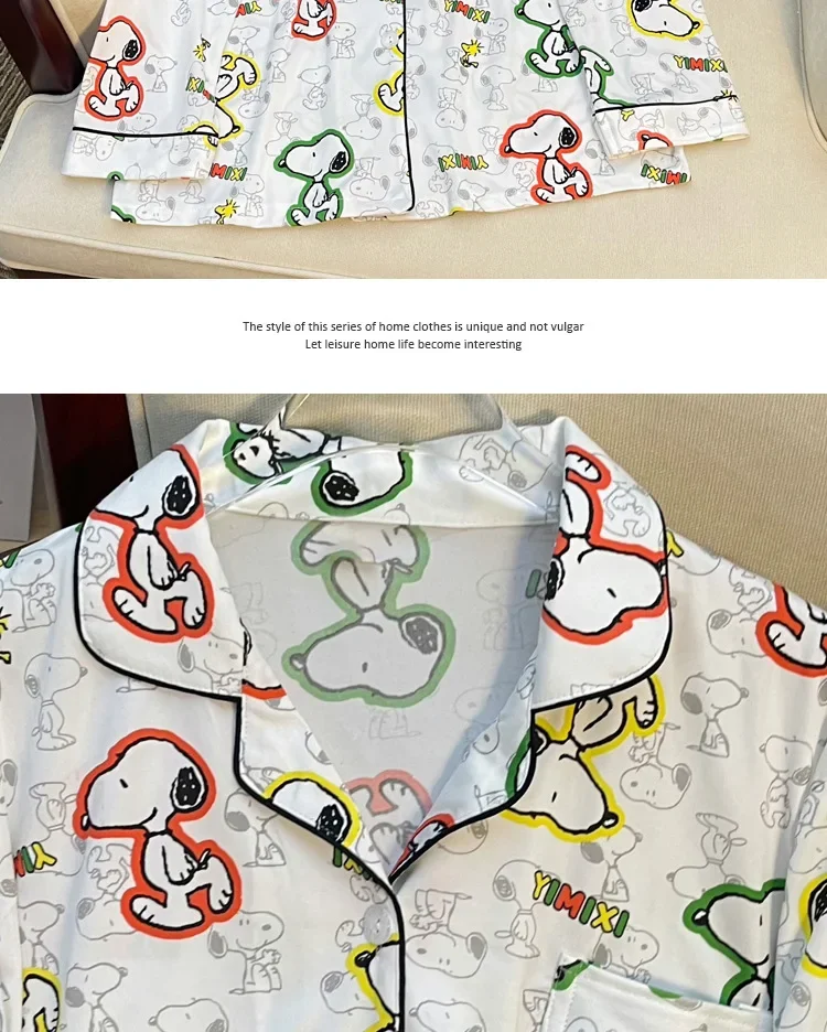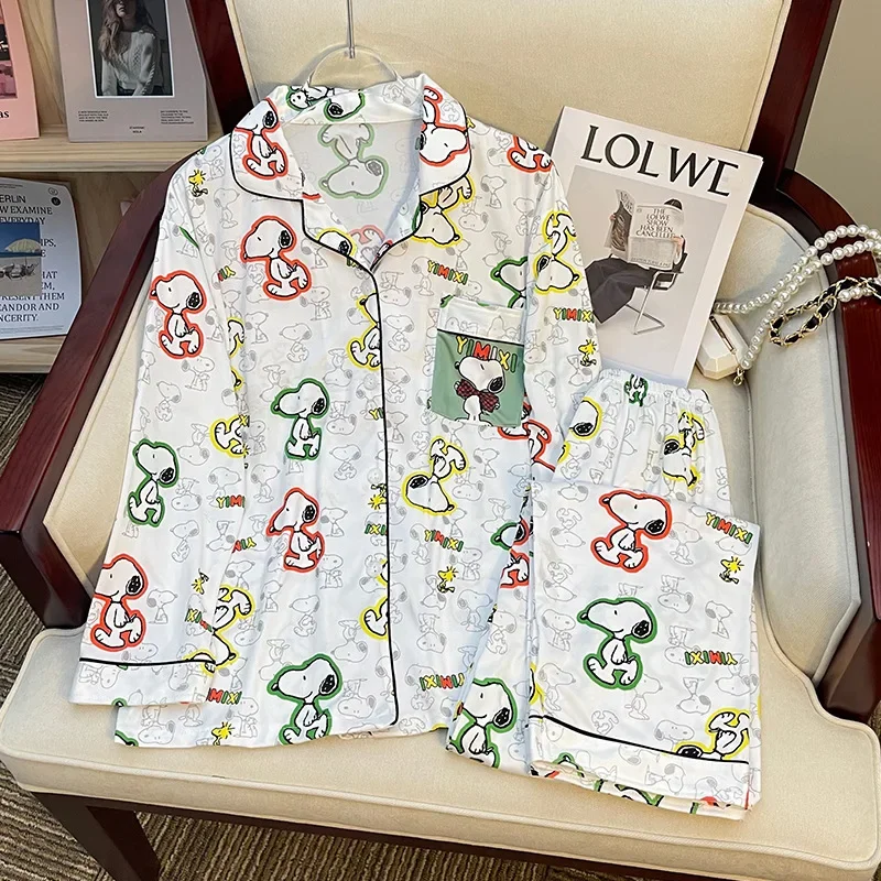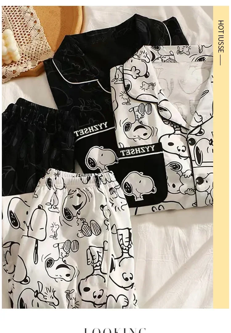 - > Snoopy dos desenhos animados primavera outono pijamas calças de manga longa verão leite seda quente casa roupas pijamas das mulheres dos homens camisola