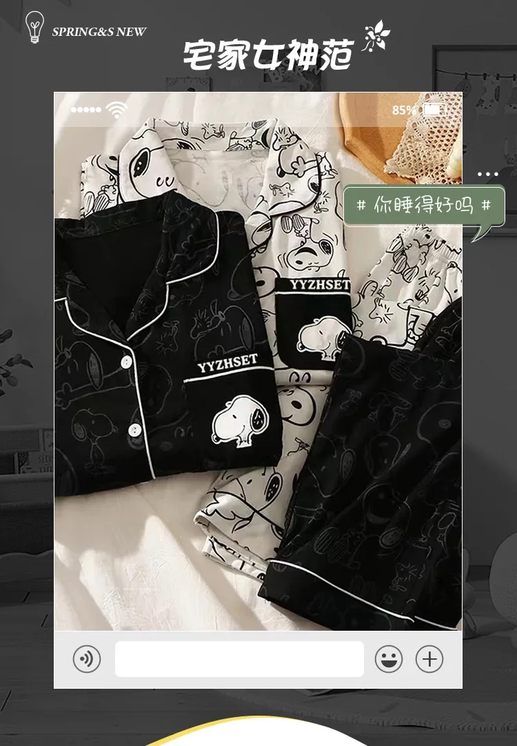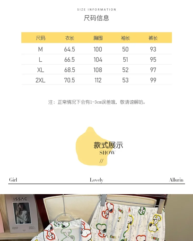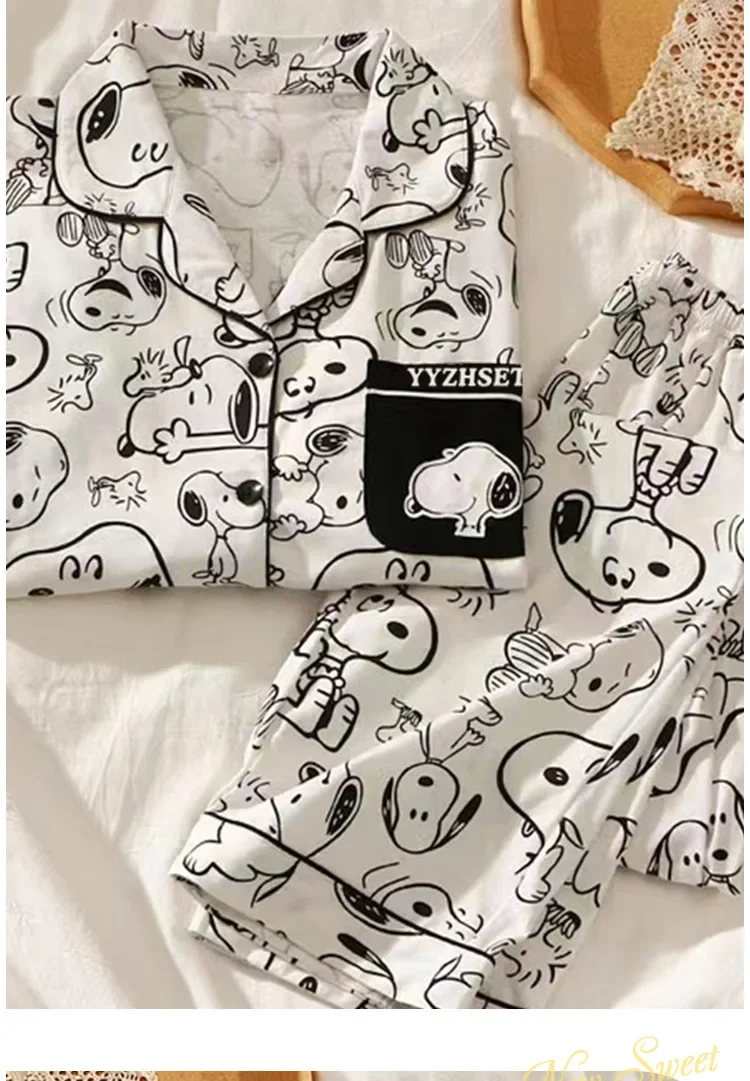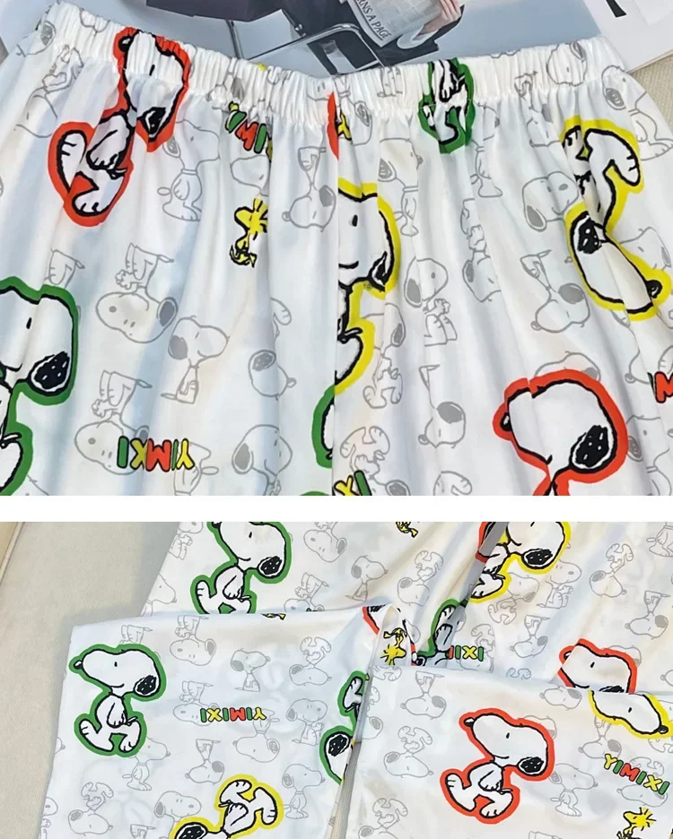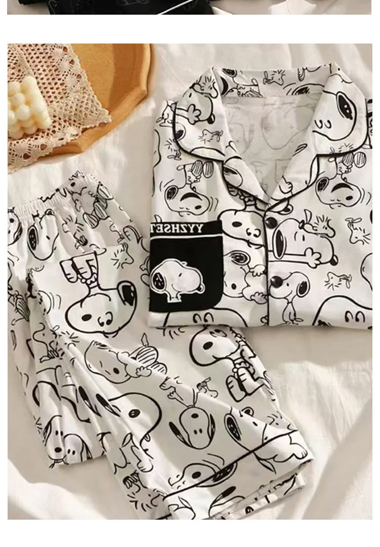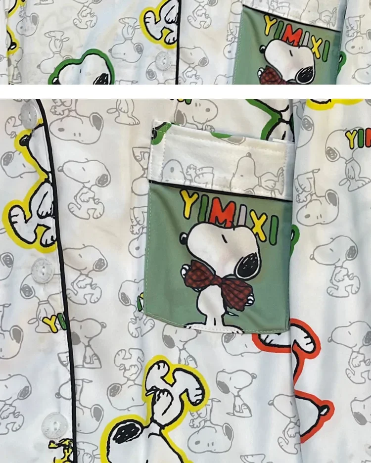- > Snoopy dos desenhos animados primavera outono pijamas calças de manga longa verão leite seda quente casa roupas pijamas das mulheres dos homens camisola