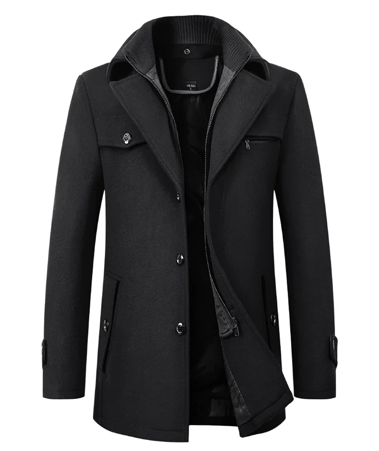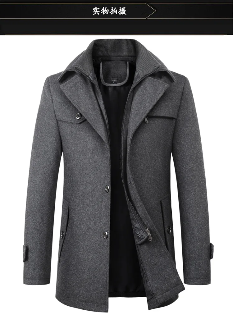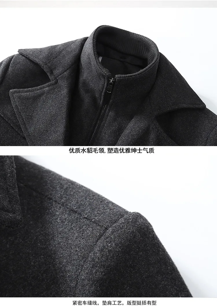 - > Sobretudo de lã de gola dupla masculino, casaco de ervilha, novo, outono e inverno, 2023
