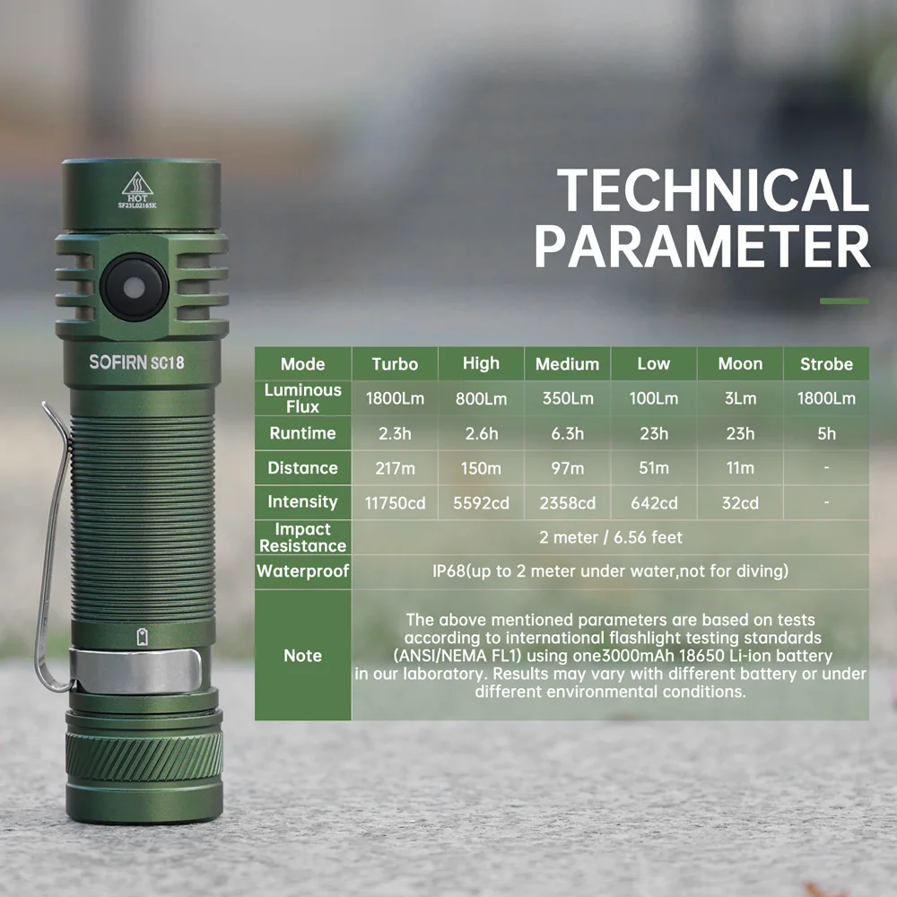 Sofirn SC18 1800lm SST40 LED 18650 Tocha TIR Óptica Lente EDC Lanterna USB C Lanterna Recarregável