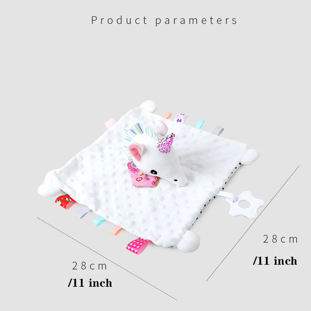 【Limpeza fácil e tamanho perfeito】: Lavagem na máquina disponível em baixa, não passe ou lixívia. Nosso bebê aconchegar brinquedo inclui um 11 ''x 11'' cobertor e uma cabeça de animal bonito que é o tamanho perfeito para o bebê para abraçar ou segurar