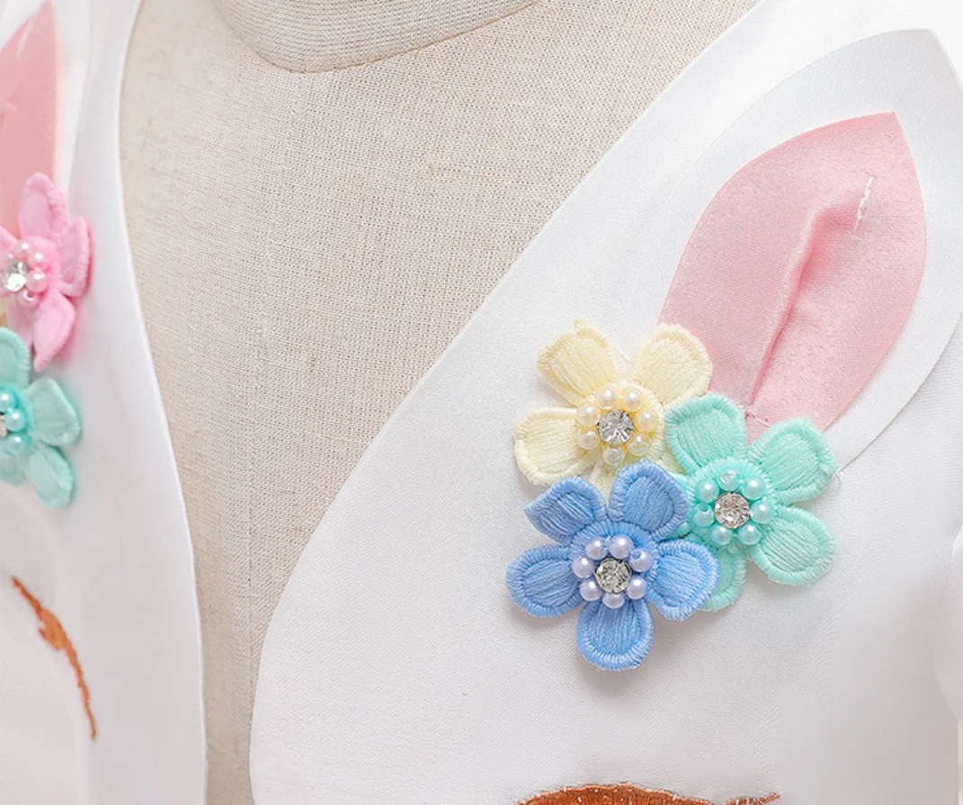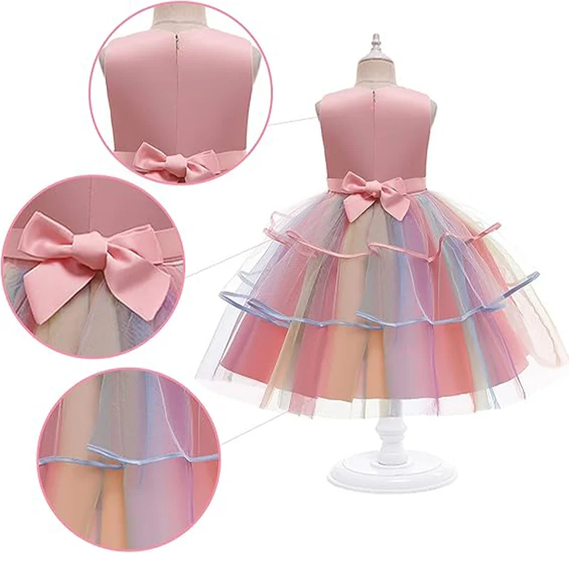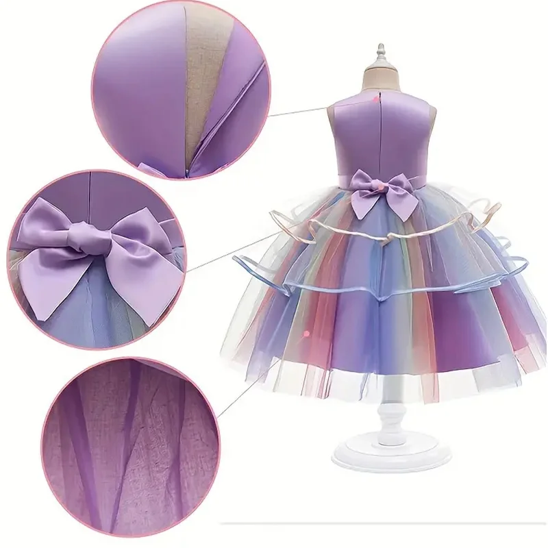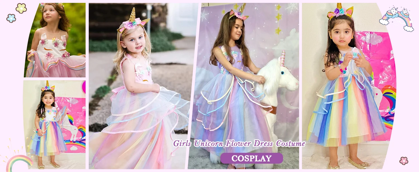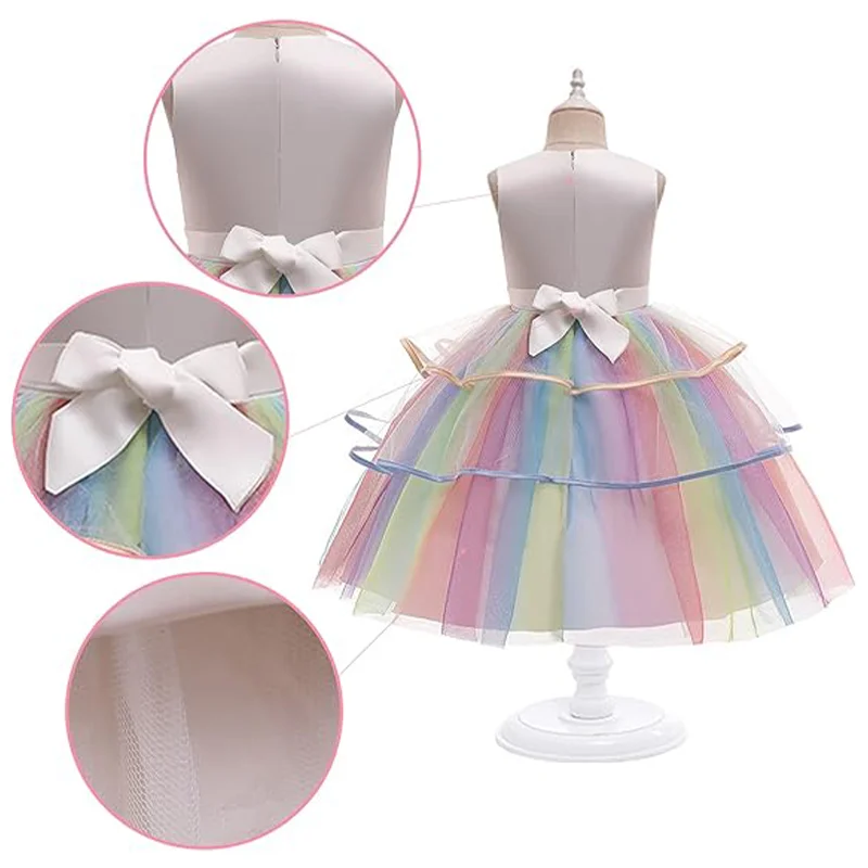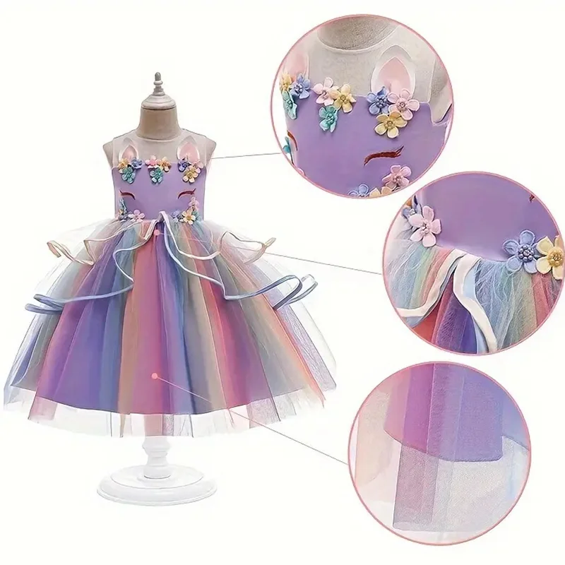 Sonhador menina bordado sem mangas unicórnio malha vestido de princesa com argola de cabelo asa para crianças festa desempenho presente de aniversário 2-10t