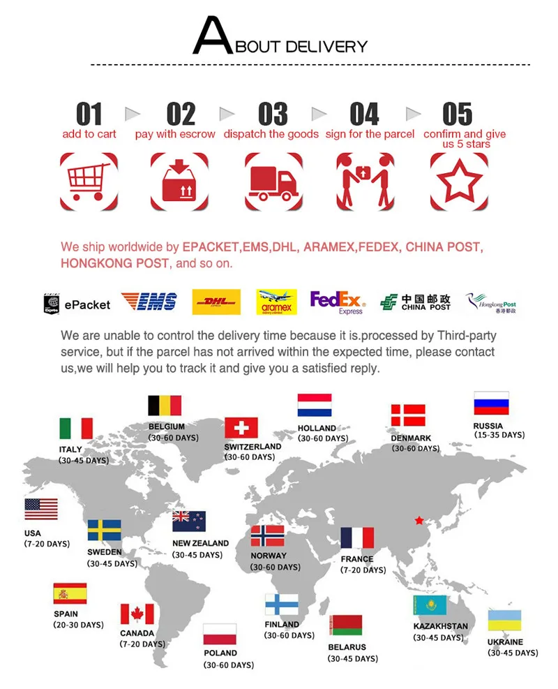 2)Se você quiser receber rapidamente, escolha DHL UPS EMS FEDEX ou outra forma de envio rápido, o frete grátis é o mais lento!