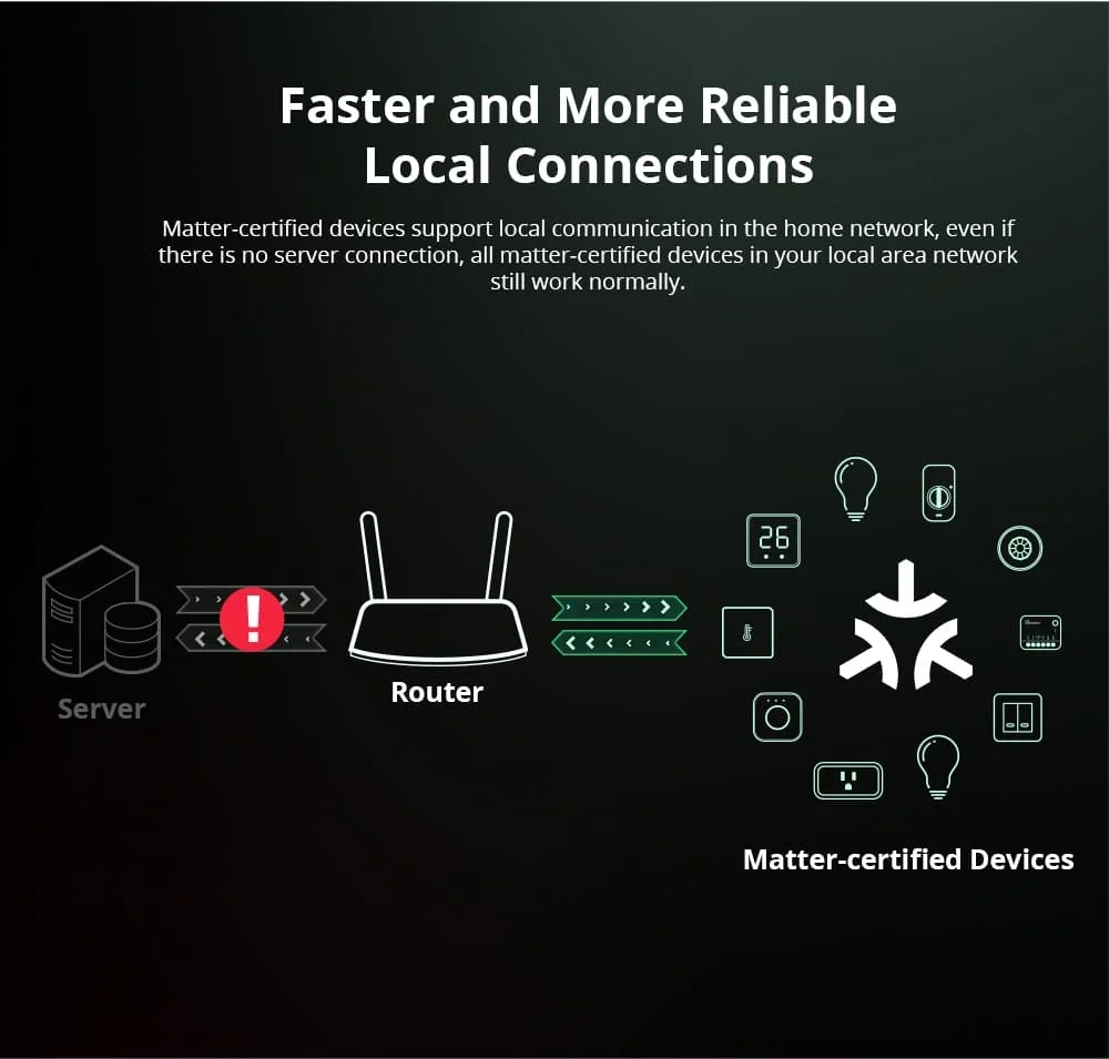 O MINIR4M é o primeiro dispositivo Matter da SONOFF, ele pode reconhecer e trabalhar com outras marcas de dispositivos finais Matter e integrar-se a plataformas habilitadas para Matter, como Apple Home, Google Home, Alexa, etc.Controlar todos os dispositivos inteligentes através de um aplicativo não é mais uma fantasia.Dispositivos com certificação Matter suportam comunicação local na rede doméstica, mesmo que a rede esteja desconectada, o MINIR4M ainda funciona normalmente, com capacidade de resposta mais rápida e melhor confiabilidade.Adicionar o MINIR4M a aplicativos compatíveis com Matter é fácil.Basta escanear o código QR fornecido com seu aplicativo compatível com Matter e o MINIR4M é facilmente configurado seguindo as etapas do aplicativo.