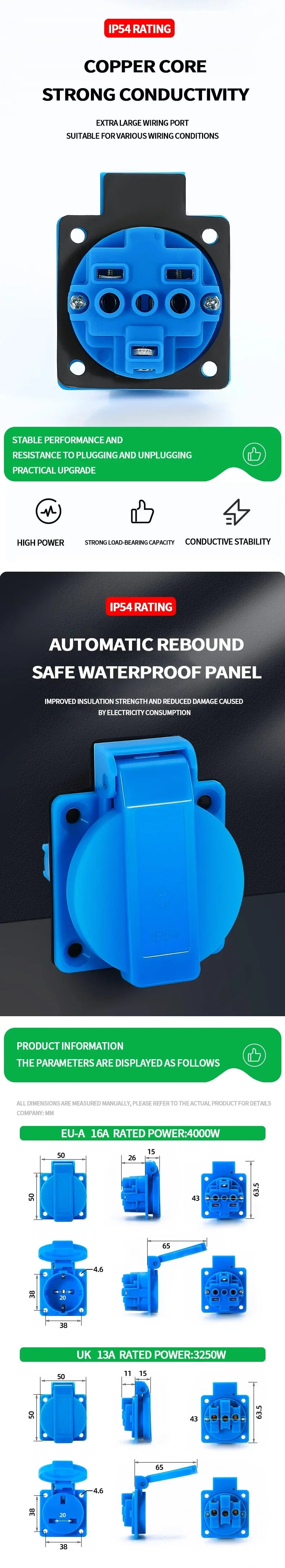 - > ? ? Soquete externo IP54 16A com tampa articulada | Plugue Euro/UK/BR à prova d'água para uso em jardim e industrial - resistente à prova de explosão ?