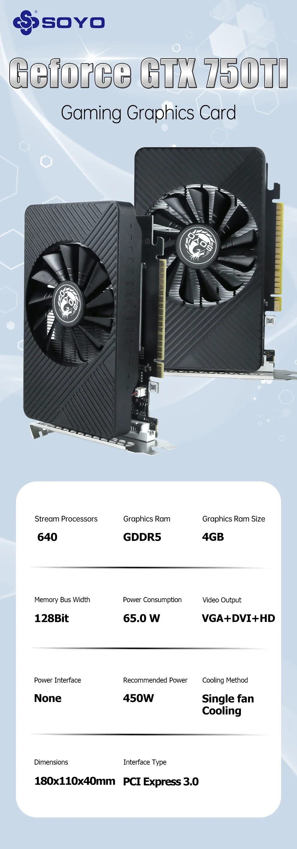 - > Soyo gtx 750ti 4gb placa gráfica gddr5 128bit pci-e 3.0 geforce gpu gtx 750 placa de vídeo para jogos componentes de computador de vídeo