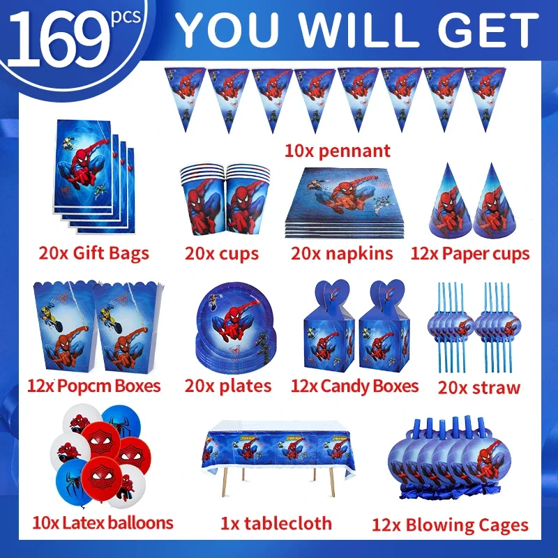 - > Spiderman decoração de aniversário tema super-herói aranha decorações de festa de aniversário guardanapos de papel fundo balões crianças fontes de festa