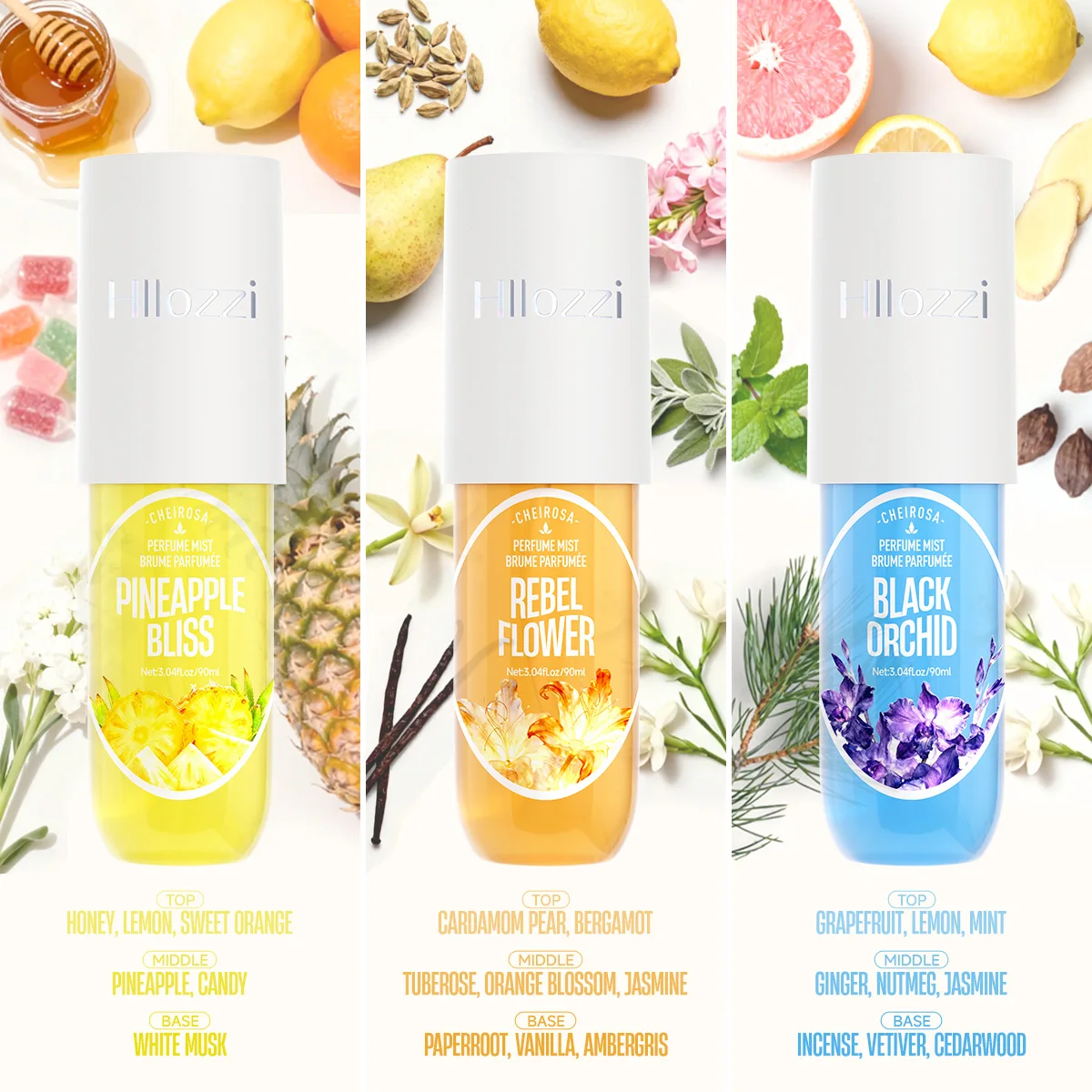 Sprays de fragrância corporal, com uma variedade de opções, oferecem um aroma encantador e duradouro para mantê-lo(a) em um bom humor o dia todo.