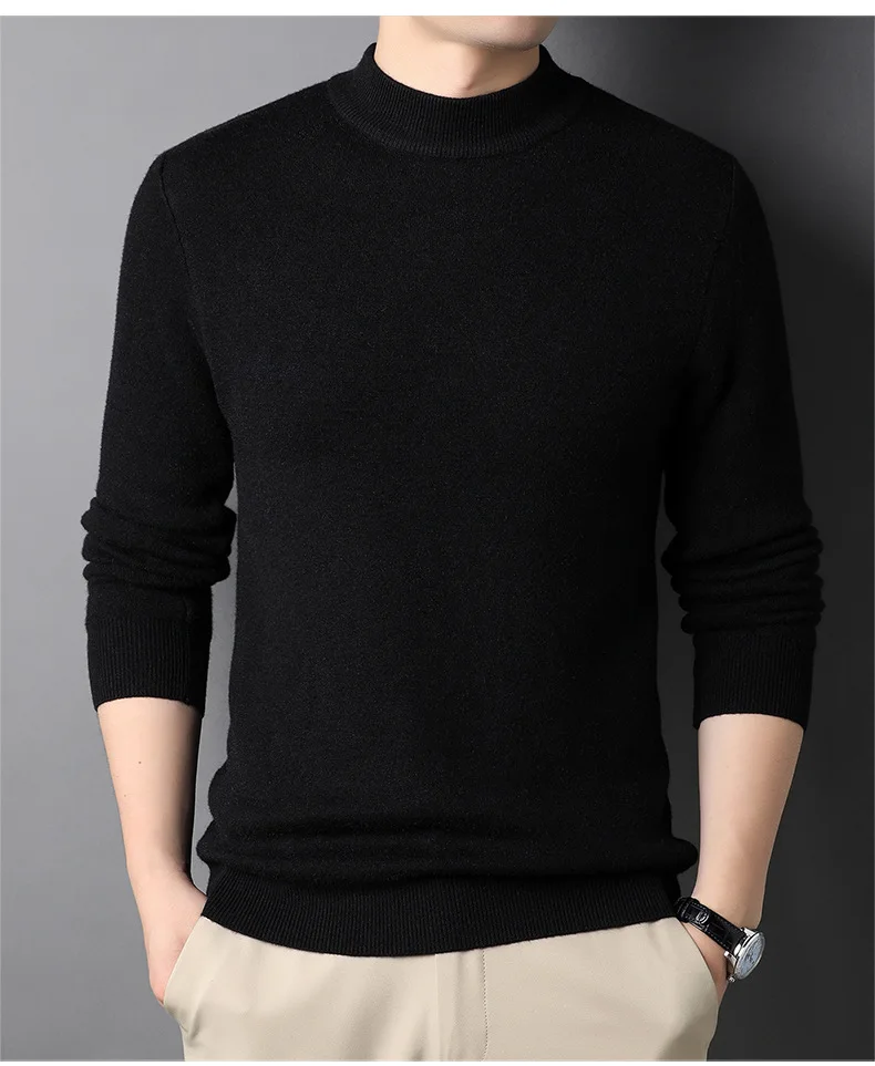 - > Suéter de caxemira meia gola alta masculino, pulôveres de malha masculino, malhas finas para jovens, novíssimo, 2024
