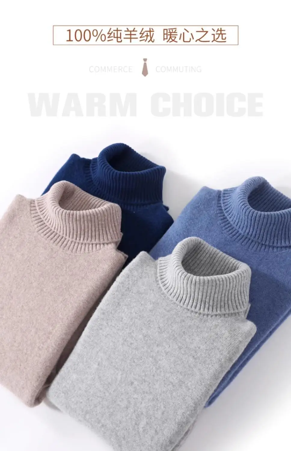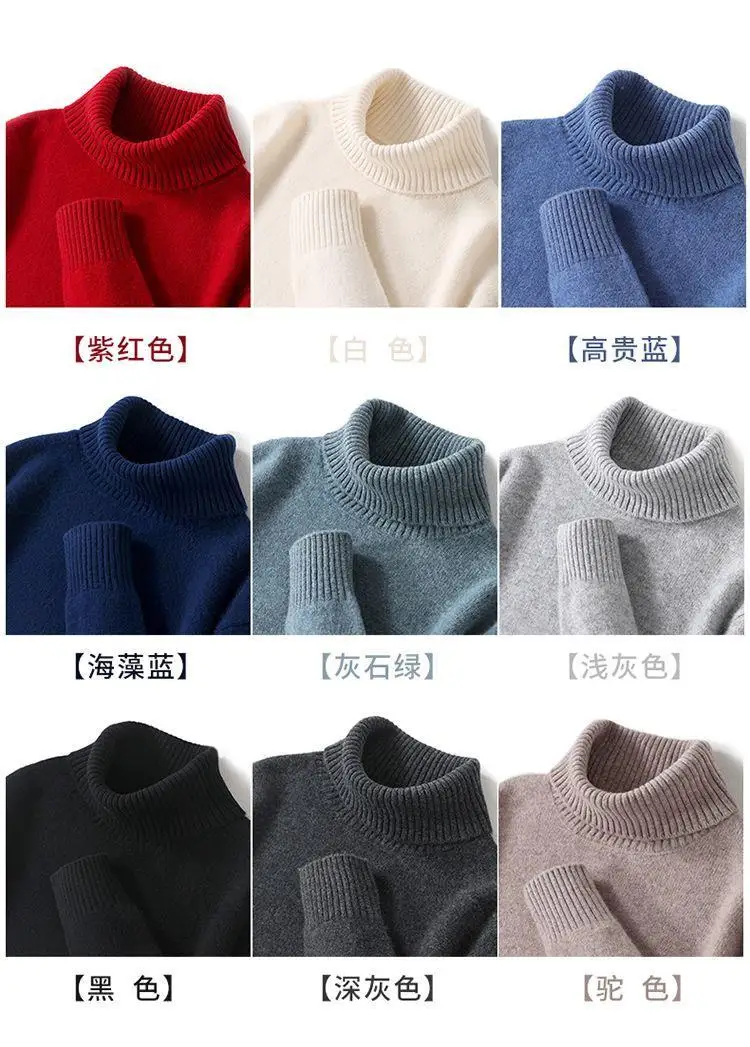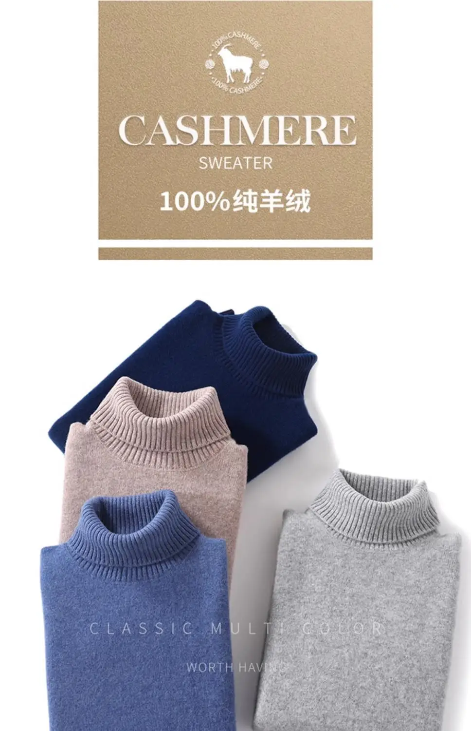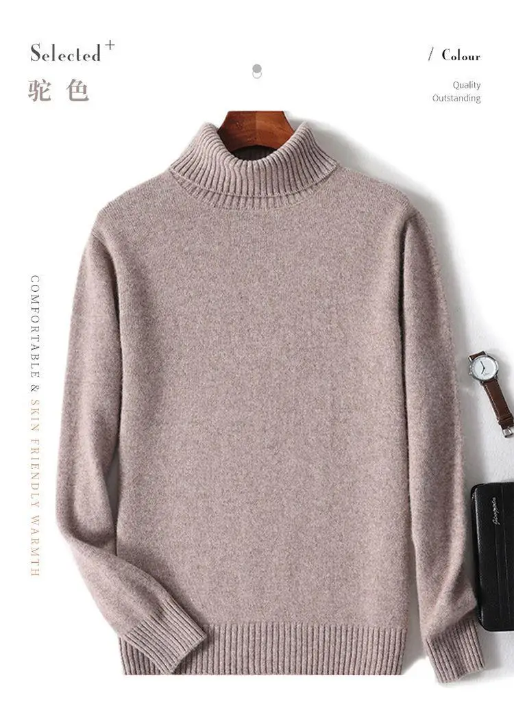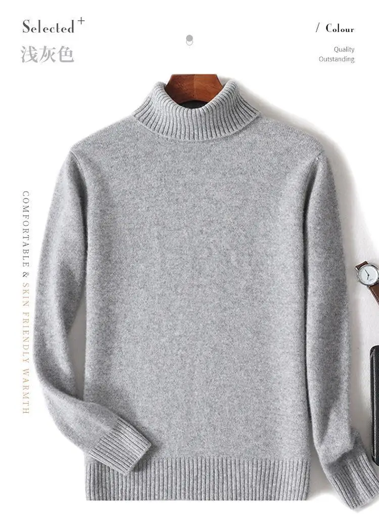 - > Suéter masculino de caxemira pura 100%, gola alta, outono inverno, grosso e solto, malha, camada base de alta qualidade, suéter masculino de caxemira