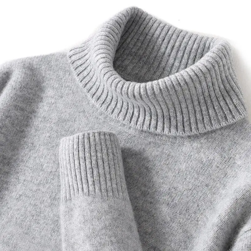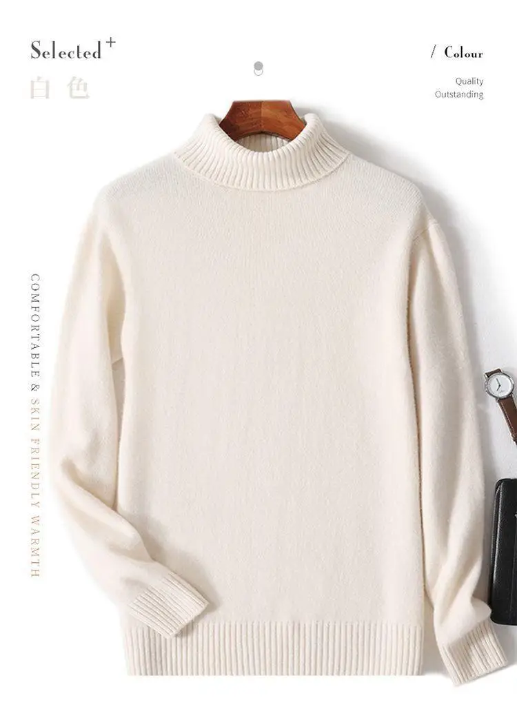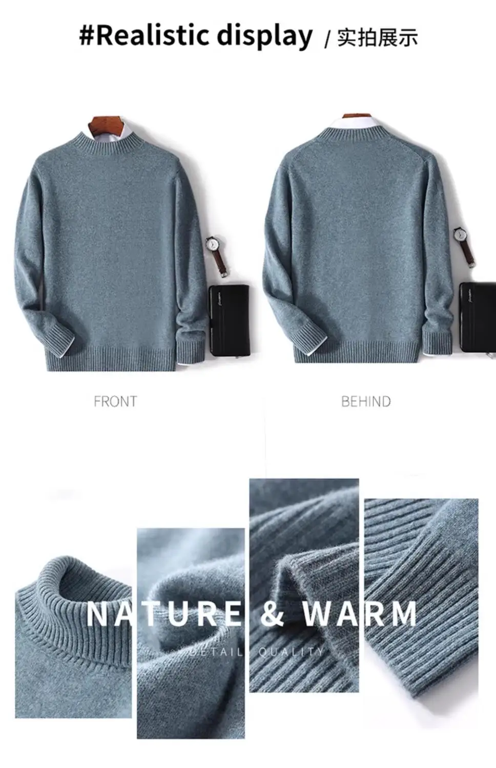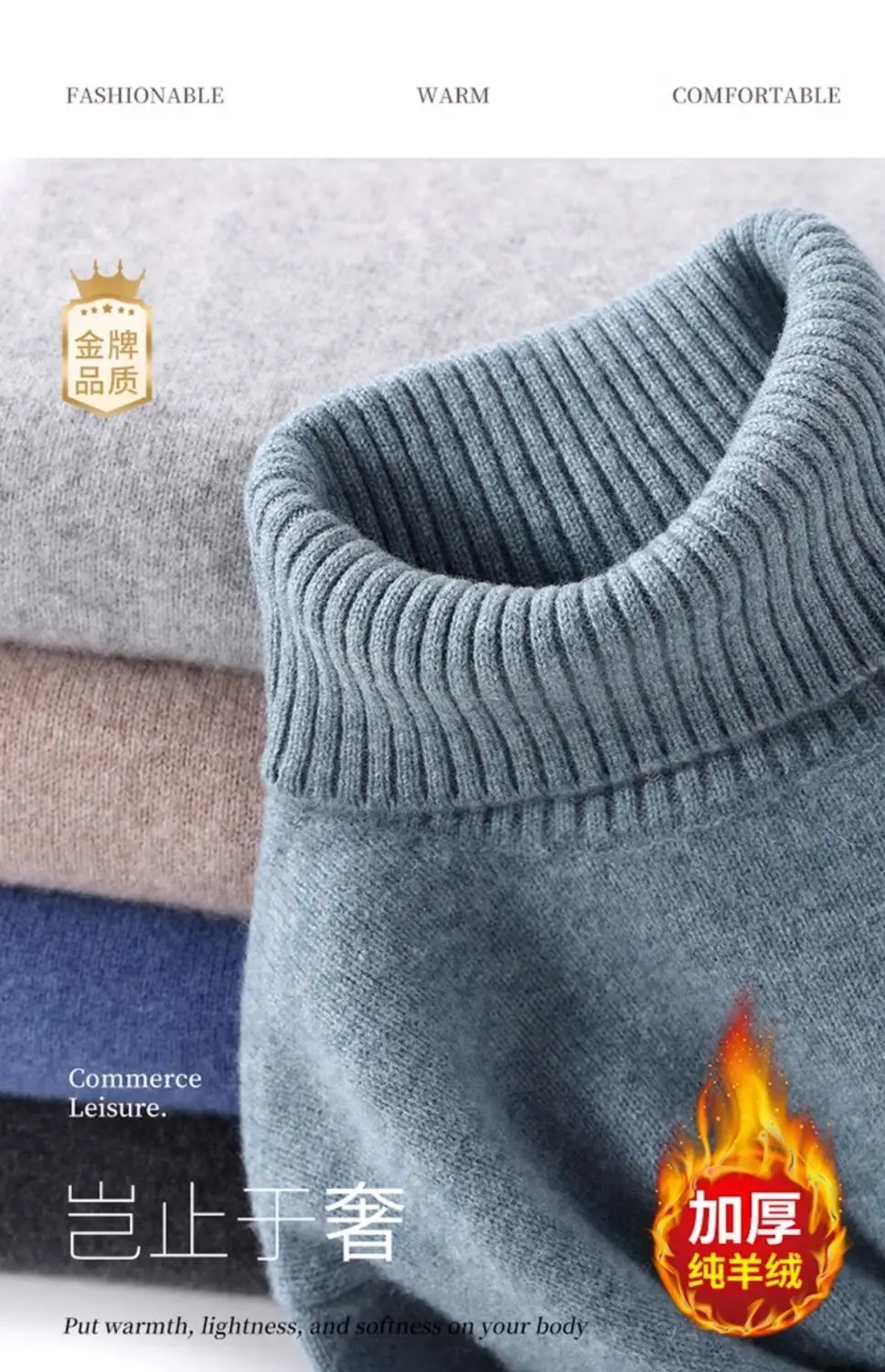 - > Suéter masculino de caxemira pura 100%, gola alta, outono inverno, grosso e solto, malha, camada base de alta qualidade, suéter masculino de caxemira