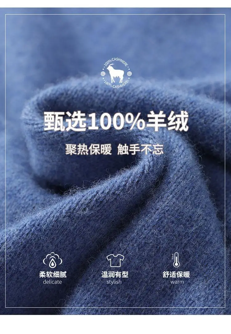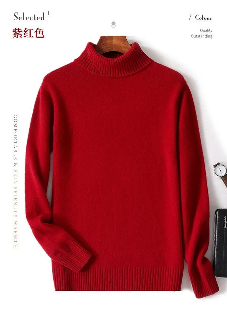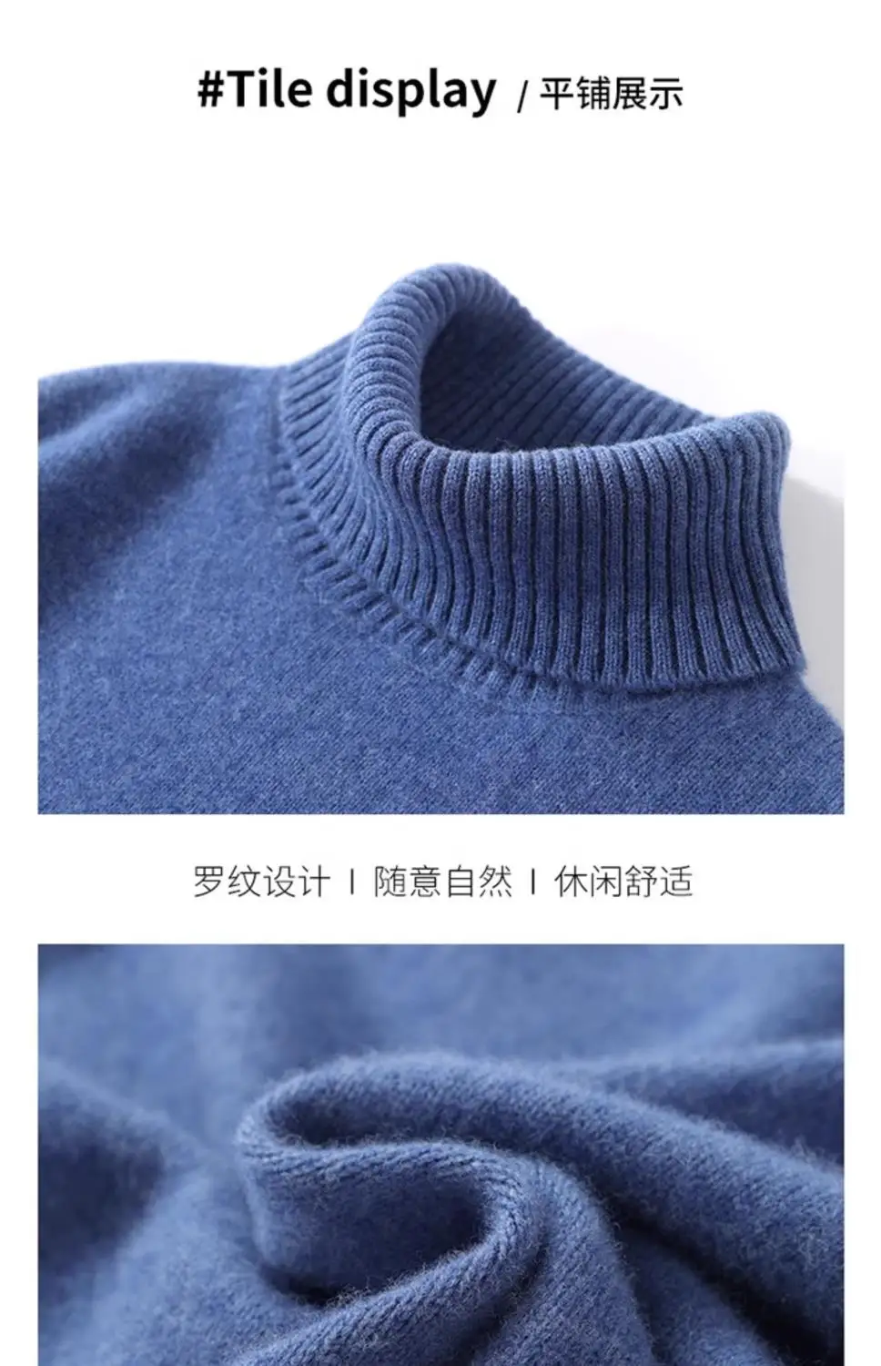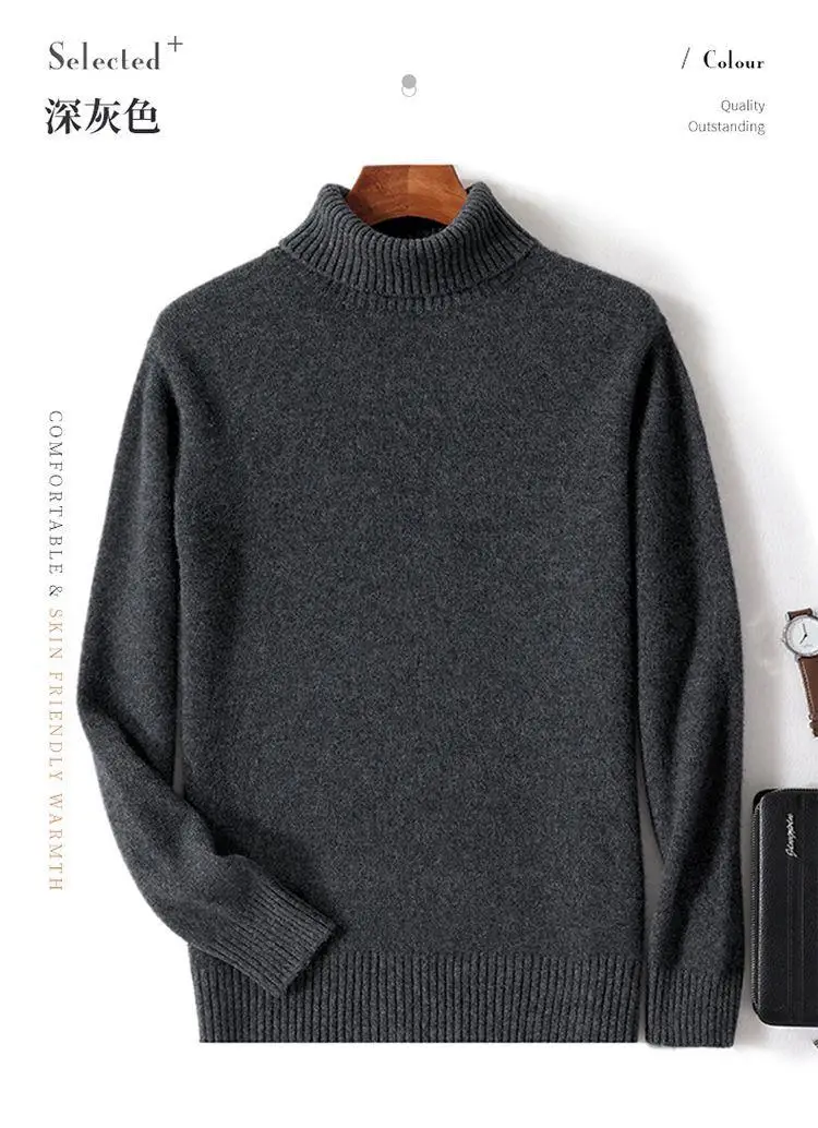 Suéter masculino de caxemira pura 100%, gola alta, outono inverno, grosso e solto, malha, camada base de alta qualidade, suéter masculino de caxemira
