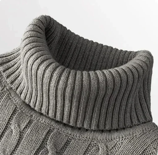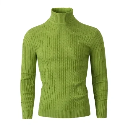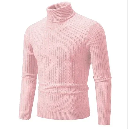 - > Suéter masculino de gola alta cor sólida pulôver de malha quente casual gola alta roupas masculinas