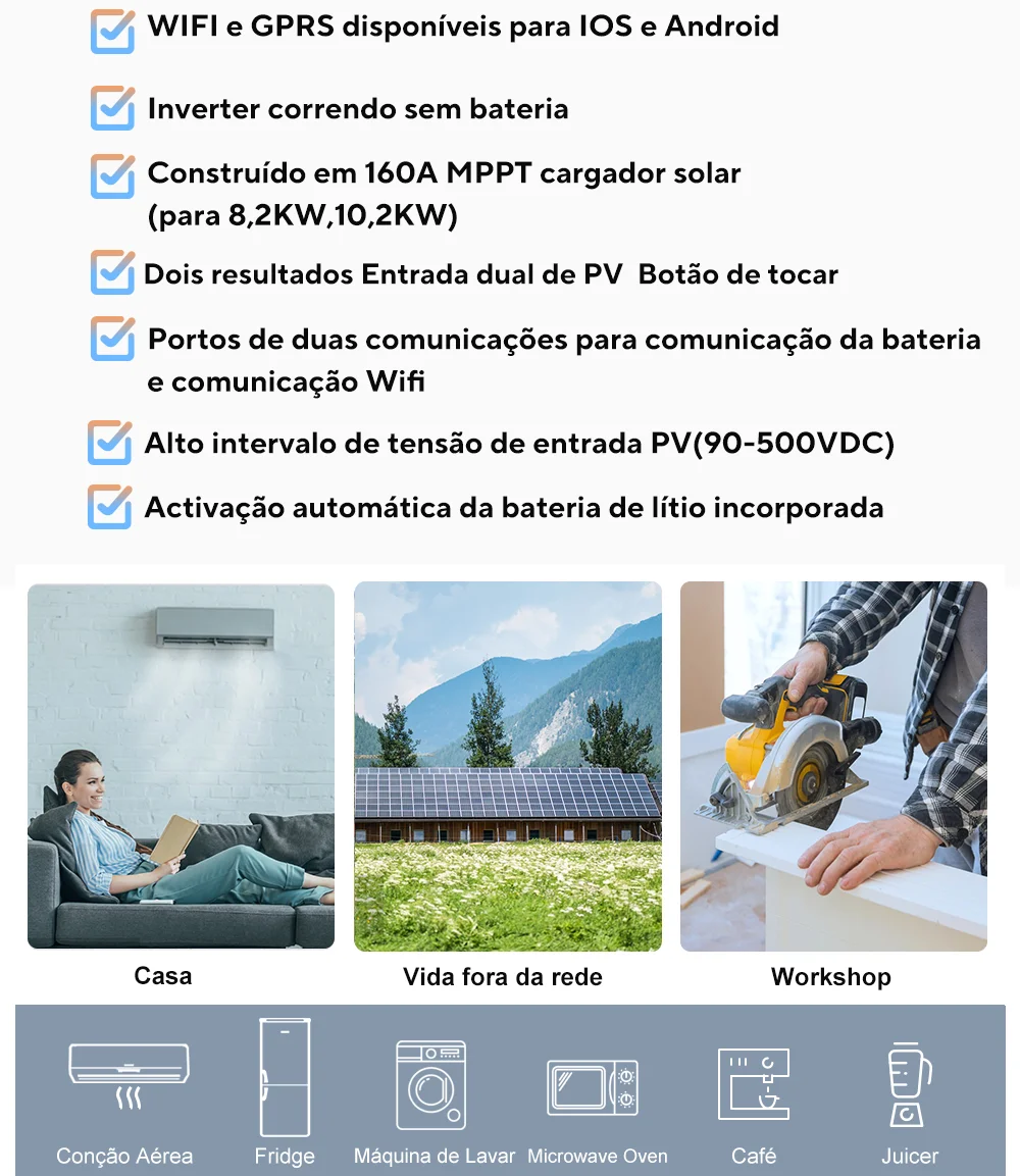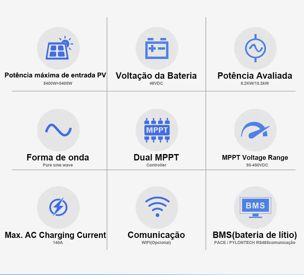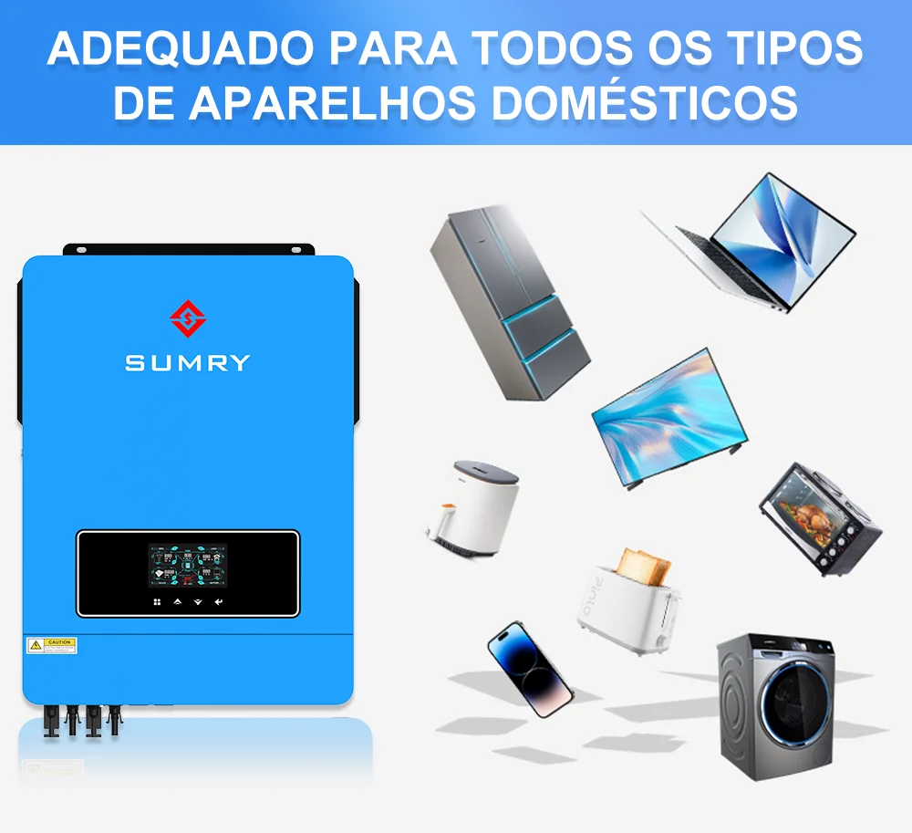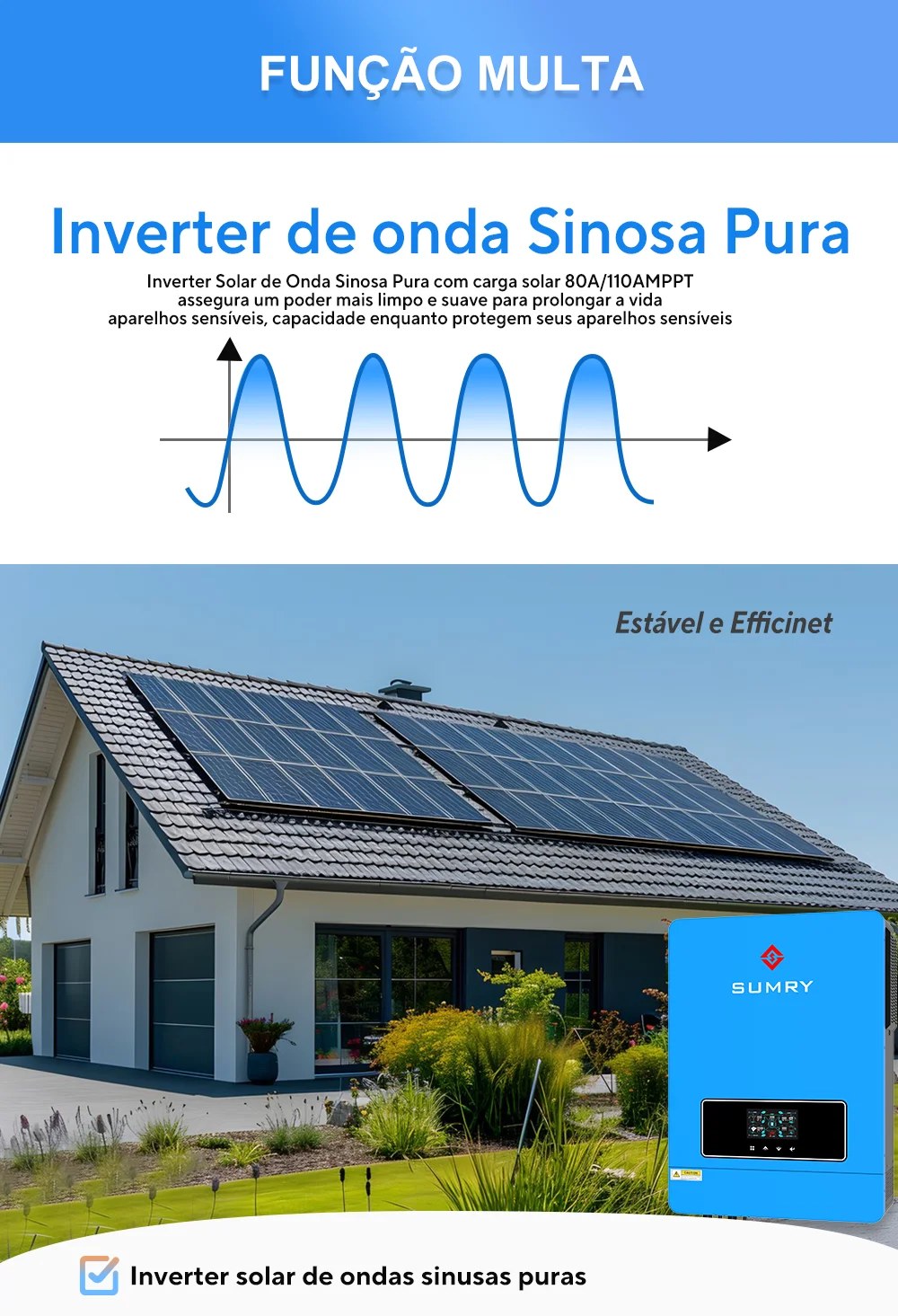 - > Sumry 10.2kw on off grid inversor solar 48vdc a 220vac duplo mppt 160a gerador de inversor híbrido ac de energia solar