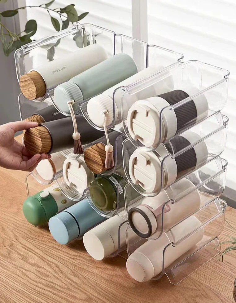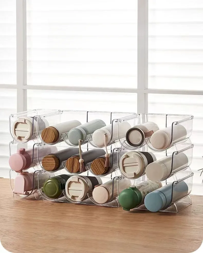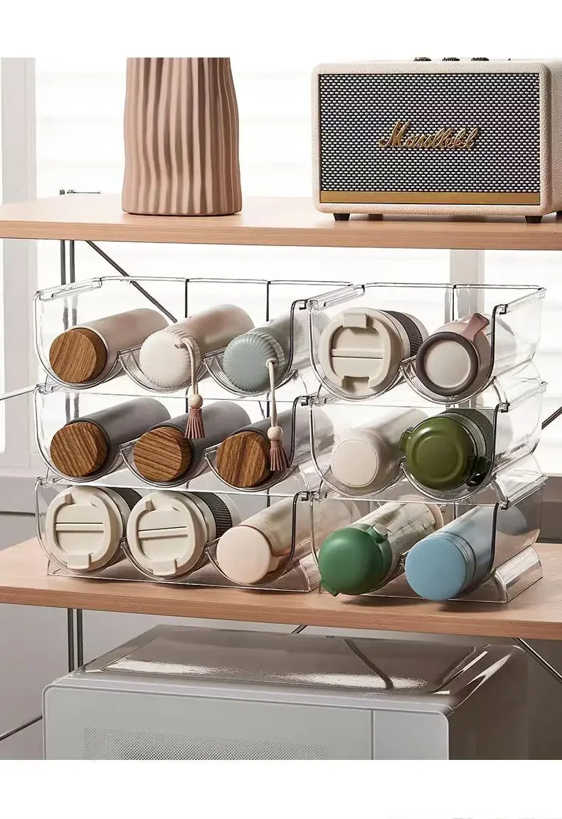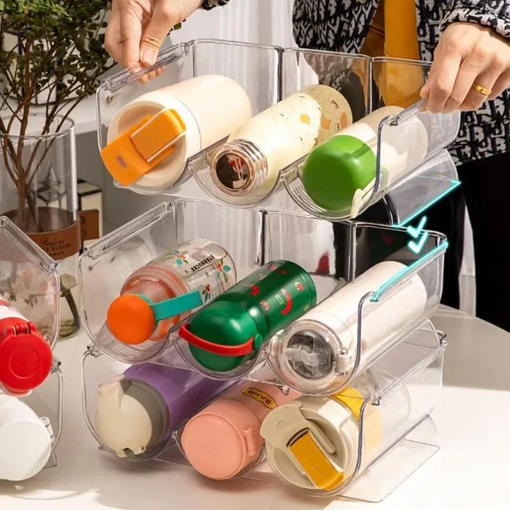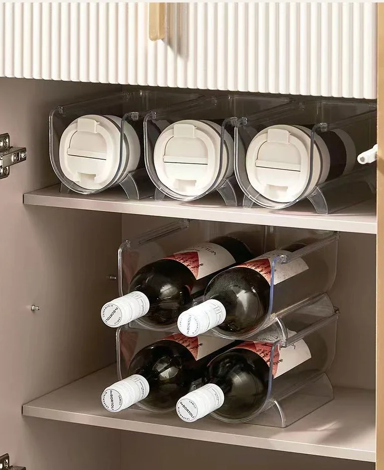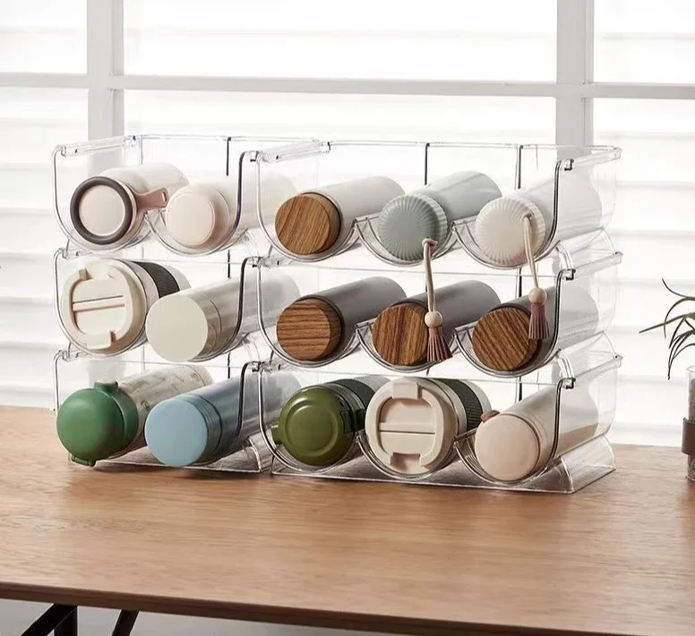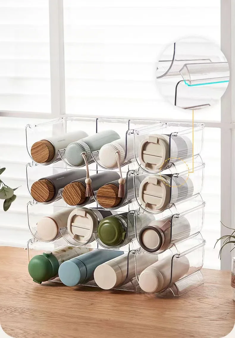 Suporte de copo acrílico empilhável geladeira vinho garrafa de água titular copo para cozinha despensa armazenamento plástico casa desktop titular