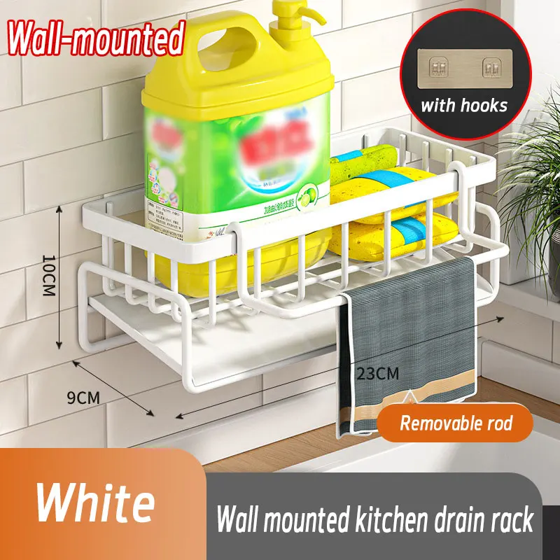 Suporte de esponja de cozinha, aço inoxidável, rack de drenagem de pia, escorredor de sabão, toalheiro, prateleira, organizador, acessórios de armazenamento de banheiro
