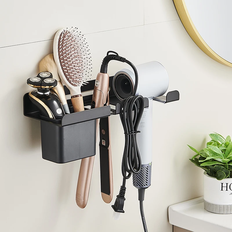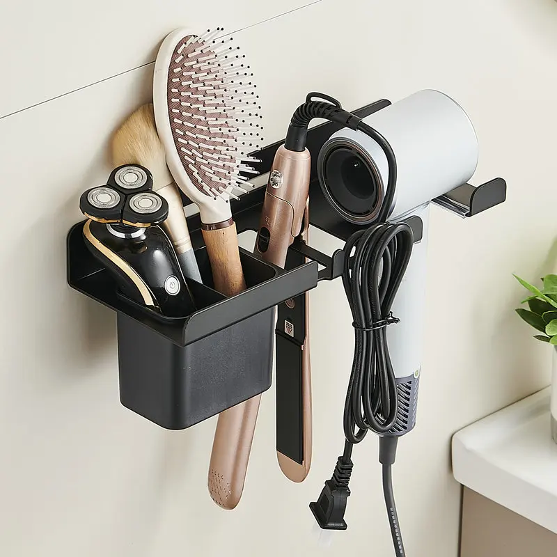 Suporte de parede para secador de cabelo, suporte para modelador de cabelo e rack de armazenamento, organizador de banheiro