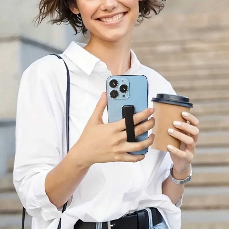 Suporte de Celular com Empunhadura para Dedos, Universal para iPhone, Pulseira de Pulso para Celular Samsung Xiaomi, Suporte de Encaixe Adesivo com Sistema Push-Back.